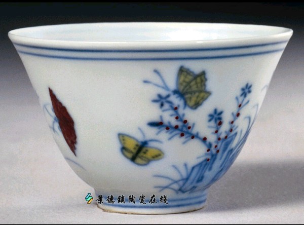 这些微妙的时代特点,往往为后世仿造者所忽略。至于施彩工艺的演变,如成化斗彩中独具的姹紫色(参看:明成化斗彩花蝶杯,斗彩葡萄纹齐箸小碟)