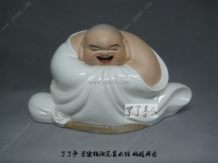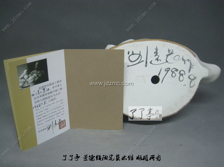 刘远长的哈哈罗汉是市面上仿制品最多的一种雕塑,应有些朋友的要求,笔者将刘远长哈哈罗汉的12寸和16寸的全部照片登载出来。其中包括,包装盒,作品全景、签字、证书四个方面,因为刘远长大师的包装和证书随时可能更改,因而这篇文章的实用性将保持到下一次文章更新。简单介绍一下,1988.8是创作日期不是制作日期,该类作品没有编号,没有限量,价格不高,历年来的哈哈罗汉只有白纹片,其他都未有产出,而市场上常见的还有青花、青花加彩,颜色釉、釉上彩等多种。如果有其他疑问,可以搜索关键词“哈哈罗汉”在了了亭网站的文章中心,里面有完整的各种关于哈哈罗汉的介绍。了了亭·李申盛/文