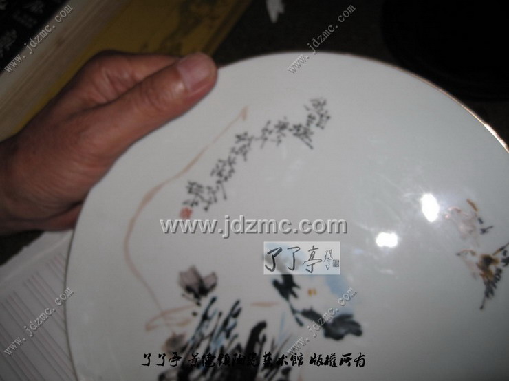 今天上午陈齐招来店里面聊天,正聊的开心的时候,进来了一个学生模样的人,手里拎着一个朔料袋,进门就问我收不收东西。我笑笑,收啊,进来吧。这个年轻人打开朔料袋,一共是两个盘子,上面一个是王恩怀的,下面一个画的很差,我没有仔细看。上面这个王恩怀的盘子画的很不错,而且题字题的很到位,具体的您可以看看下面的图片。
