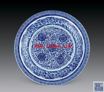 瓷釉的质量也明显逐渐变粗。施釉较薄,釉色白中闪灰闪青,或呈浆白色。釉面上普遍出现细橘皮纹,有些器物上釉面起皱,如波浪起伏,俗称.波浪釉.,这种现象在以后各朝中亦均有表现。有些器物上还有疙瘩釉,在道光朝的蓝地青花器上疙瘩釉现象尤为明显,这个时期器物表面的光润度也较前朝为差。青花装饰基本沿袭乾隆朝,嘉庆早期青花颜色亦如乾隆朝一样,在蓝中略显紫色,后来则显比较纯正的蓝色。层次感已明显不如乾隆,一般也就一二个层次,立体感较差。道光朝有仿康熙青花的器物,但它已渲染不出康熙朝的深浅不同的多种层次,因此,较易识别真假。嘉道期流行双勾不填色的花草纹青花图案,此类器物的青花发色较浅淡,多看真品后不难鉴识。嘉庆后期起,部分器物青花色调出现暗淡漂浮不沉着的现象,这种情形一直延续至道光、咸丰,乃至同治、光绪、宣统各朝。