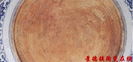 以旋转方式刮制器底、器足而形成的同心圆纹。
