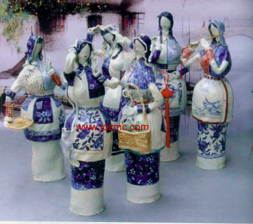 文/图《瓷器》记者鹿鸣 特约撰稿 董亮 孙燕明,1962年11月生于景德镇,江西樟树人。1984年毕业子景德镇陶瓷职工大学陶瓷美术专业,现为江西省工艺美术大师,中国美术家协会会员,供职于景德镇市雕塑瓷厂。 陶瓷绘画《大江东去》获得2000年中国工艺美术国家级银奖,陶艺雕塑《水乡风情》、陶艺组器《江流天地外》2004年入选第十届全国美展。 2006年,孙燕明被江西省人民政府授予“江西省工艺美术大师”称号,同年还被雕塑瓷厂列为建厂五十周年最重要的十几位技艺人员之一,2007年获江西省“五一”劳动奖章,全国“百千万人才工程”人选。2008年获全国“五一”劳动奖章,20余件作品分获国家、省级奖项并被各级博物馆收藏。有数万字论文,近百件作品在各级刊物公开发表。 从艺2()余年来,孙燕明工艺技术全面娴熟,并坚持对文化进行深层次的思考,坚守中国本土设计理念,在陶瓷绘画、陶艺雕塑、高温窑变等领域均有非凡建树,尤其擅长瓷上人物绘画 与景德镇的其他本土陶瓷艺术家相比.孙燕明进入人们视野的方式有些特别。毕业于当地一所普通美术院校的他,却为全国第十届美展奉现了陶艺雕塑《水乡风情》、陶艺组器《江流天地外》,这两组作品现代、时尚、抽象、洗练,分别将青花和窑变这两个景德镇元素发挥到极至。在圈内,陶艺作品一向被列为工艺美术作品,难登大雅之堂,各届全国美展鲜见陶艺作品,“名不见经传”的孙燕明却打破了这一个惯例,他也因此被中国美术家协会破格吸收为会员。这一年是2004年,42岁的孙燕明就已经跻身大师行列。 孙燕明16岁进入景德镇市雕塑瓷厂学徒,此后被评为该厂建厂五十周年最重要的十几位技艺人员之一,这一履历显示,孙燕明对景德镇传统制瓷工艺有着充分的把握和了解.从制坯到烧成,每一道工序孙燕明都非常熟悉,除了具有扎实的艺术功底之外,他还非常注重工艺材质自然美的再现,挖掘和发现“瓷器”本身的诗意之美.并在艺术实践中将两者完美融合,渐渐形成了自己独有的创作风格。 能够在现代与传统之间如此自由地行走,这与孙燕明非同寻常的人生际遇有关。在老厂的日子 空矿的厂房,排列整齐的罗汉、观音,刚进雕塑瓷厂的孙燕明和几十个师兄弟一起,跟厂里的老艺人学填彩,为这些罗汉、观音做装饰,这是一个单调而又辛苦的工种。但在当时,能在工厂里找到一只“泥饭碗”,对于少年孙燕明来说,已属不易,在别人想方没法离开瓷业单位的时候,他却沉下心来扎扎实实学艺,除了填彩之外,他还喜欢在厂区的各个车间里转悠,除了看人家印坯、制模之外,最喜欢去看一些身怀绝艺的老艺人做雕塑。 上世纪80年代,孙燕明通过不懈怒力,考取了景德镇陶瓷职工大学美术专业,获得两年脱产学习的机会,而在此之前,因为家境不宽裕,初中都没读完,连参加高考的资格都没有。孙燕明非常珍惜这个来之不易的机会,从素描开始,潜心学习,除了美术专业之外,他还大量阅读了中国古典文学及外国名著。除了绘画之外,他还做了大量的读书笔记。画画、读书和写作成了他这一时期的日常生活。 从职大毕业后,孙燕明重新回到了雕塑瓷厂,分配到厂里的美研听从事包装设计工作,这几年的经历对于孙燕明日后的成长同样重要,在这一阶段,他接触了大量现代艺术作品,并且在他的许多设计作品中有所体现。 到了上世纪90年代,陶瓷企业开始了前所未有的动荡。孙燕明请长假离开了雕塑瓷厂,开始靠一支画笔谋生,到老厂的一家私人作坊里画瓷器,“画一根得—根”,这在当时是一种非常流行的模式。由于当时烧的是煤窑,成品率不高,烧制成—件完美的作品非常不易。这也让孙燕明对于陶瓷艺术创作有了更切身的体验,除了造型的准确之外,还必须掌握陶瓷的工艺特陆。 在作坊里,孙燕明自己动手做坯、喷釉、青花、色釉样样尝试、实践,积累了丰富的经验,手上的功夫旱已不同往日,几年下来,居然靠画瓷器赚了4万多元,在当时,这笔钱对于孙燕明来说几乎是个天文数字。谁也没想到,内心从来就没安分过的刊咽明却用这笔钱去买了一座梭式窑,烧窑对于孙燕明来说是个完全陌生的行业,他为此付出了“倾家荡产”的代价,几次倒窑让他积攒了几年的4万元化为乌有。 1998年,身无分文的孙燕明开始在绝望中寻找希望,并最终在迷茫中找到了方向:只有陶艺创作才是自己终生的目标。为此。孙燕明重新回到老厂,并在一间简陋的坯房里,开始了他新的创作之旅。 新文人画气息 孙燕明的坯房夏天热冬天冷,但对于他的创作而言却是一座天堂。因为与坯房比邻的是一座窑,许多大师的作品都送到这里来烧,每次开窑,孙燕明都会第一时间赶到,仔细观摩同行们的作品。而在他坯房的四周,全部是星星点点的小作坊,拉坯、修坯、画坯,喷釉,还有许多外地艺术家来老厂搞创作,孙燕明从不放弃和这里海一个人的交流机会,“卧薪尝胆”式的心境,让他渐渐从画瓷器“谋生”变成了“我要创作”的自觉行动。 有一天,孙燕明在一个作坊里看师傅拉坯,随着辘轳车的旋转.一团团泥巴在师傅的手中变成各种造型的器物,在师傅拉制花瓶的过程中,刊咽明恍幌间却感到师傅双手正在拉制的是一个女人体,这个发现在列咽明的脑海中如同亮过一道闪电。他立即买了几根刚拉好的坯搬回自己的坯房,进行切割、重组,他的成名作《水乡风隋》的灵感就是来源