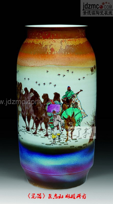 人物名片: 李少景 1964年出生于中国景德镇,江西省工艺美术大师,江西省陶瓷美术家。1987年毕业于景德镇陶瓷职工大学美术系,现任江西省陶瓷研究所副所长。系中国工艺美术学会会员,江西省工艺美术学会理事,景德镇美术家协会会员,高岭陶艺学会常务理事,江西省工艺美术系列高级职称评委,江西省工艺美术学会陶瓷艺术专业委员会委员兼学术展览部部长,景德镇市陶瓷协会艺术瓷专业委员会副秘书长。 艺术成就: 1992年被评为景德镇市“瓷都十大新闻人物”;1993年被国家授予“全国工艺美术优秀技艺人员”称号;1995年参加“中国陶艺家代表团”赴日访问并进行技艺表演;2004年被评为“第四届瓷都十大杰出青年”称号;2007年被评为景德镇市“专业技术拔尖人才”。作品参加国际、国内各级陶瓷评比,共获奖70多项,其中代表作《渐变》获1992年日本美浓国际陶瓷评比入选奖;色釉彩《山庄飞瀑》瓶获《首届中国工艺美术大师作品暨工艺美术精品博览会》金奖;综合装饰《丰年》瓶、陶艺《鸟语花香》分别获第四届、第五届全国陶瓷评比一等奖。另有作品获国家级陶瓷评比金奖7项,二等奖1项,三等奖3项;省级评比金奖5项,银奖6项;市级评比一等奖13项等。作品《大漠情韵》瓷板被中国工艺美术馆收藏;《春光》瓶被中国国家博物馆收藏,从艺略传被编入《景德镇陶瓷美术百家》《中国当代陶瓷美术家辞典》《景德镇陶瓷全集》《中国美术全集·陶瓷卷》等辞书中。 “第一次到戈壁,广袤的大沙漠,一望无际。人是那么的渺小,有生以来我首次对着上空放肆地吼到:啊……并在沙漠里疯狂地打着滚。我想我只能用疯了来形容当时的情绪。那个时候,任何杂念都可以摈弃,没有人不被这里壮丽的大自然景观所震撼。于是,我开始迷恋这里,先后三次流连在这里……”这是整个晚上的采访,李少景情绪最为高涨的一刻。 因为他脾气秉性是那样的谦和,以至说话的语速和音调都是那样的舒缓。而说到他的成就,他谦虚地说:“不算什么,我就是踏踏实实走过来,如果不是你今天的采访,我还从来没有回过头看自己走过的路。”而如果你看过他的作品及所有的荣誉,你不得不惊叹在这个物欲的社会还有这种“俏也不争春,只把春来报”的人生意境。因为我在一个展会上见过他的作品,他的作品如同他的人一样,是一枝不斗则艳、不争自奇的雅丽华美之花。所有作品追求的意境是清雅而不轻浮,严谨而不呆板,新逸朴拙中带着阳刚猛劲。人常说画品如人品,那李少景的作品体现的是他的人品。当然任何人都有他疯狂的一刻,而他只有在沙漠里,才能全身心地放松,因为他还要身兼江西省陶瓷研究所副所长一职,这位江西省工艺美术大师在大部分的时候不得不面对各种繁琐的事务和应酬。 出身并非名门世家