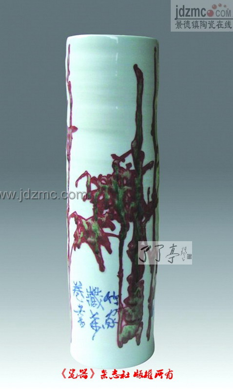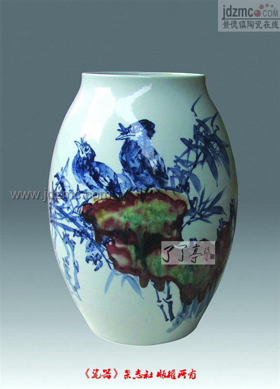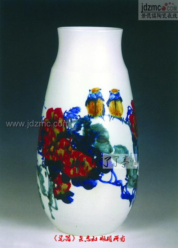 艺术家名片: 黄杨,1936年5月出生于江西省南昌市安义县,号天后斋老人。原名黄敬其,1965年更名为黄杨。江西省高级工艺美术师,中国工艺美术学会高级会员。 2010年被评为江西省工艺美术大师。 1962年景德镇陶瓷学院艺术系首届毕业生。同年分配在北京中国建工部建材科学研究院工作,因不结合专业,1964年回到景德镇,从事陶瓷美术设计,1990年调江西省陶研所工作,至今投身陶瓷艺术创作近50年。 少年时黄杨师从胡献雅、宁璘、余翰青等教授,勤学苦练国画和书法基本功,同时吸收历代名家表现技法提高自己的艺术水平,创作了大量的陶瓷艺术精品。作品多次在国内外展出中获奖,部分被博物馆、美术馆、陶瓷馆及收藏家珍藏,大部分作品远销日本、新加坡、美国、印尼、中国香港、中国台湾等地。 《瓷器》记者 程丽芳 文/图 在采访过程中,黄杨多次提到保尔-卡察金的那句我们都非常熟悉的名言,“一个人的生命应当这样度过:当他回首往事的时候,不会因虚度年华而悔恨,也不会因碌碌无为而羞愧!”他认为,自己这一辈子能投身到自己热爱的陶瓷创作当中,是最大的满足与收获。 艺术成绩: 1977年设计的《荷花》2号带托茶杯两套被景德镇陶瓷馆收藏。15头咖啡具和5头高白釉文具在厂大量生产。 1989年书法作品唐英诗词《花点轻装》被景德镇历史博物馆收藏。 1990年尺四磁盘《亲昵》虎,被美国彩盘中心布莱福特收藏。 1997年出版的大型画册《庆香港回归江西老年诗书画作品选集》,国画作品《春风带香归》被收录。 1993年纪念毛主席诞辰一百年陶瓷作品《红色井冈山》和《看万山红遍》花瓶被国家收藏。 1994年被收入《中国当代陶瓷美术家辞典》,同年赴日本现场技艺表演。 1998年纪念刘少奇同志诞辰一百周年陶瓷作品《群山呼唤》瓷瓶被国家收藏。 1995年、1996年赴上海表演。艺术传略被编入《中国当代名人录》,其作品有60多件在25余种大型画册中出版。 1999年青花釉里红2尺6瓷板画《猫头鹰》被中国美术馆收藏。陶艺《思》获得首届景德镇国际陶瓷节精品赛二等奖。尺8彩盘青花釉里红《双鲫图》被《世界美术集》华人卷收录。 “年纪大了,画画也是一种很好的锻炼。” 如果不是黄杨自己介绍,记者很难相信,眼前这位侃侃而谈的艺术家居然已经75岁了,这不由地让记者想到,景德镇为数众多的老艺术家们,在古稀甚至耄耋之年都能保持着旺盛的精力,投入生活和创作,恐怕最好的解释是:创作年轻了艺术家的心理,画画成为了最佳的运动方式。 虽然退休在家多年,但黄杨依然坚持不懈地从事着陶瓷艺术创作。天气好的时候,他每天都要出门去画室工作,如果遇到雨天,他则会呆在自己家里画画,阳台上专门腾出一个空间,成为他的小小画室。 黄杨是南昌人,出生在安义县。就像每家的长者,过年总要对家里的小辈聊起他们小时候的趣事,黄杨清晰地记得,当初自己对绘画萌生兴趣,始于一只大雁。 上小学时,在一次美术课上老师布置大家画大雁南飞,黄杨没有想到,自己交上去的画卷老师给打了100分!当黄杨看到分数时心里特别开心,在这以前,他还从来不知道原来自己还有绘画的潜质!从那一刻起,黄杨突然对绘画产生了浓厚的兴趣,而且充满了信心,要在美术上取得成绩。 最初,他开始进行大量的作品临摹,就这样,画画成了黄杨少年时期最大的兴趣爱好。 念初中的时候,这种临摹的成果得到了回报和检验,聪明灵活的黄杨利用课余时间,常常去市场上揽些画画的简单活计来做,那时候每到夏天,大家都是用油纸扇子消暑降温,黄杨利用业余时间给人家画扇面,虽然当时画一把扇面只能挣到几分钱,但毕竟是得到了市场的认可。 当时还有一件事也让少年求学的黄杨觉得骄傲和难忘,那是在上高中的时候,学校要筹备开展校园运动会,于是面向全体师生征集运动会纪念章的设计方案。而黄杨设计的纪念章图案从众多应征作品中脱颖而出,被校方选中。自己设计的纪念章被佩戴到了每位同学的胸前,令他获得了巨大的成就感。 没有专业老师指点,也没有过进行系统训练,仅靠着勤学苦练,天资聪颖的黄杨绘画水平日益精进。 1958年景德镇陶瓷学院首届招生,黄杨以优异的成绩成功考取该院艺术系本科,开始4年正规全面的艺术理论与实践学习。 总是处在自学状态的黄杨在迈入大学校门后,有了脱胎换骨般的变化,他特别珍惜这段求学时光,就连平时的周末和节假日他都在自觉练习画画。直到现在,黄杨已经年逾古稀,几十年过去,但他读大学时的绘画作业还被小心地保存着。 在陶瓷学院,黄杨先后师从胡献雅、宁璘、余翰青等大师,勤学苦练国画和书法基本功,为日后的陶瓷艺术创作打下了扎实的功底。读书期间,作为胡献雅老师的得意弟子,黄杨常常被点名在课堂上现场作画,为其他同学示范。 1962年大学毕业,黄杨因为品学兼优,被分配到北京,在当时的建工部建材科学研究院工作。北京,中国的心脏,每个中国人都向往的地方,虽然黄杨非常热爱北京,也很勤奋努力地工作,但他每天所从事的建筑卫生陶瓷科研,却与他因为一只大雁的成功而生出的梦想相去甚远。 因为,黄杨的梦想与志向,是有朝一日成为一名真正的陶瓷美术家。这令他不忍割舍自己喜欢了十多年的绘画艺术,不忍割舍陶瓷的情结,不忍割舍景德镇的情结! 在北京工作了短短一年多时间,黄杨毅然决定回到景德镇,全身