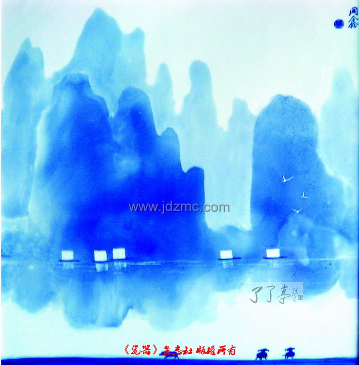 感觉成就境界 无论是《长城魂》,还是《高山流水》或是《喜相逢》,孙同鑫的泼墨作品都力求创作激情,并倾注于瓷板之上,以表达深远的意境。 青花泼墨是孙同鑫的自创,在上世纪80年代决定研究青花泼墨之前,他甚至没有看过国画的泼墨技法。20多个寒暑之后,孙同鑫的青花泼墨已成瓷坛一绝。 但孙同鑫却觉得泼墨技法本身并不值得夸耀,单纯在技巧上也并没有太多意义,相反他认为无论是传统的技法还是他的青花泼墨都只是手段,更重要的是作品表达出的思想境界和内涵。 只不过青花泼墨技法更适于表现奔放的风格,不像传统技法那么局限。泼墨看似随意,好的效果也看似偶然得之,但从事青花泼墨20余年的孙同鑫却不这么认为。青花泼墨需要足够的经验,进行泼墨之时瓷板上都是黑乎乎的料色,根本看不出颜色的深浅和效果,没有胸有成竹的把握,那就只能寄希望于小概率的侥幸发生。 相比载体为宣纸的国画泼墨,青花泼墨的难度更大。青花泼墨的载体是泥坯,材质疏松,吸水性强,泼青花料上去瞬间即干。因此泼墨时需要在极短的时间内作出正确的判断,控制颜色深浅等创作过程,这就需要足够的经验累积来支撑。在研究青花泼墨的过程中,孙同鑫不断试验和熟悉原材料的性能,并使它为自己所用,为自己的艺术思想服务,以青花泼墨来表达其独特的艺术风格。 要做到思想和技巧统一,并在泼墨之前详细构思直到胸有成竹才能动手泼墨,孙同鑫正是如此才将泼墨效果的偶然化为必然,也正是如此,才能直抒胸臆。 走自己的路 孙同鑫出生于陶瓷世家,自小便耳濡目染了传统制瓷技艺和陶瓷艺术。在孙同鑫的艺术成长道路上,也得到过许多良师指导。 青花大王王步就是其中一位。孙家和王家算得上是世交,王步很喜欢孙家的这个小孩,时常会叫孙同鑫去他那里,“同鑫,我画了几块盘子,你过来看看。”孙同鑫最喜欢王步画的猫,王步画猫十分传神,就连猫腹部的绒毛都和真的一样。 此外,孙同鑫对王步谦虚好学的求艺态度也是记忆深刻。王步有次到北京开会,回来便兴奋地和孙同鑫说起北京的见闻。 “这一回,我碰到了一个大画家。”王步笑呵呵地对孙同鑫说道。 “什么大画家。”孙同鑫纳闷了,心想你自己不就是大画家。 “我碰到徐悲鸿了。”王步对自己的际遇很是得意。 虽然当时年纪很小,但徐悲鸿的名号孙同鑫还是听过的,便问:“有他的画吗?” 王步哈哈一笑,“我带了他的画片来。”(当时很少有大幅的艺术复制品,画作也多印刷在很小的画片上。) 于是,一老一小便专注地观摩起徐悲鸿画的马来。 孙同鑫11岁开始学徒,学艺期间得到多位大师指点,后又师从王锡良大师。虽然孙同鑫的从艺道路上有这么多名师指导,但孙同鑫却没有生硬地走老师们相同的路,“和老师们学,更重要的是学习他们的创作思想和对待艺术的执着精神。” 孙同鑫十分敬佩王锡良大师,因为王锡良的作品有自己的思想,在技法上也突破了传统技法的限制,走出了自己的一条艺术之路。 因此,孙同鑫决定走出自己的一条路,哪怕一条路走到黑也在所不惜。在孙同鑫的早期作品中,我们就能发现孙同鑫与他人的不同之处。 孙同鑫早期曾创作了一块名叫《涉江》的釉下五彩瓷板画,为体现作品意境的岁月沧桑,孙同鑫借鉴汉砖的纹样,大胆起用赭色作为背景装饰,令人叫绝。画面中屈原凌波而歌,赭色的江水将画面气氛烘托得十分悲壮。在一次展览上,一位湖南人看到这幅作品,不禁惊叹,“为什么我们湖南就没有人想到这样做?”当时湖南最擅长的就是釉下五彩。 孙同鑫独特的构思常常给人留下深刻的印象。上世纪80年代末,孙同鑫创作了一幅《黛玉葬花》的写意作品。《黛玉葬花》是许多艺术家们都乐于表现的题材,正因如此,要做到不落俗套,又要表现好黛玉“花落人亡两不知”的凄凉心态,就十分有难度。 孙同鑫构思时,没有表现黛玉荷锄或是筑花茔的场景,而是标新立异地表现了黛玉款款俯拾落英的神情,让人看了又悲又怜。当时秦锡麟教授看到画作后,对孙同鑫的构思巧妙大为赞赏。 在创作技法上,孙同鑫花费20多年的时间苦心钻研泼墨技法。这是一个未知的领域,但孙同鑫义无反顾地为之倾注了半生精力。孙同鑫不喜欢过分强调传统笔墨,因为这会限制他作品所要表现的内涵,而泼墨技法则更为奔放,让他找到了更加适合自己的表现手法。 孙同鑫说,没有任何一项技法是完美的,他也将继续钻研青花泼墨工艺,让这项技法更为完善和成熟。 传统的事物,毫无疑问都美好而经典,孙同鑫执着于创新,但从来不否定传统,他希望他的青花泼墨有一天也能成为传统,被后人不断创新。而他自己,正在创造着经典。