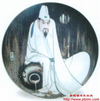事物总是不断发展得到。戴荣华介绍说,明代五彩的装饰工艺发展到清代特别是康熙年间却更以一个灿烂绚丽的境界出现于世,形成了一整套的釉上装饰方法和彩绘手段。无论是色彩、技法、装饰形式、题材等均已达到了一个成熟的阶段。我们把这种装饰风格的彩绘称谓“古彩”。接着,他仔细地讲述了古彩的几个最典型的特征;色彩方面,由于创造了釉上翠色(古翠),从而代替了五彩中的青花蓝色,从此摆脱了依赖釉下青花蓝色的被动局面,完整了古彩的基色。同时,又创造性地选用“本金粉”(本金粉是用纯金与铝粉制成的一种金粉末)来做瓷器装饰,在康熙古彩中还是很典型的。以本金粉来做瓷器装饰,其效果富丽堂皇、光彩夺目,给人以珍贵之感。为了更好地达到色彩的表现效果,于是又把五种基色配分成多种色阶,即:古大绿、淡大绿、古苦绿、淡苦绿、古水绿、淡水绿、古黄、淡古黄、古翠、淡古翠、红头紫、蓝头紫,这样不但丰富了色彩的层次关系,而且又柔和了装饰效果。以乳香油(乳香与煤油炼制而成的一种粘合剂)调料描线比胶水调料要容易掌握,既好描线又好彩出阴阳,同时线条更可以描绘得精细自然。因此康熙古彩线条笔法细腻清秀、雄健有力。例如画人的面部、手部、衣褶均描绘得精神细致,尤如发丝。而画树木山石则又粗细相应,曲姿多变,很有一波三折之意。说到这里,戴荣华如数家珍地评述了老师段茂发、李盛春、欧阳光“古彩之杰”对景德镇陶瓷艺术发展的贡献。谈到在一九九零年景德镇首届国际陶瓷节段老一件古彩《郭子仪拜寿》瓷瓶被一外商以三万元购去的往事,他扼腕叹息:“那是国宝哇!”那惋惜、遗憾的情绪大有欲以重金赎回之意。我知道,这其中饱含着他对尊师的挚爱,满蕴着他对五彩瓷艺术那割不断,舍不得,魂萦根深的情感意绪。