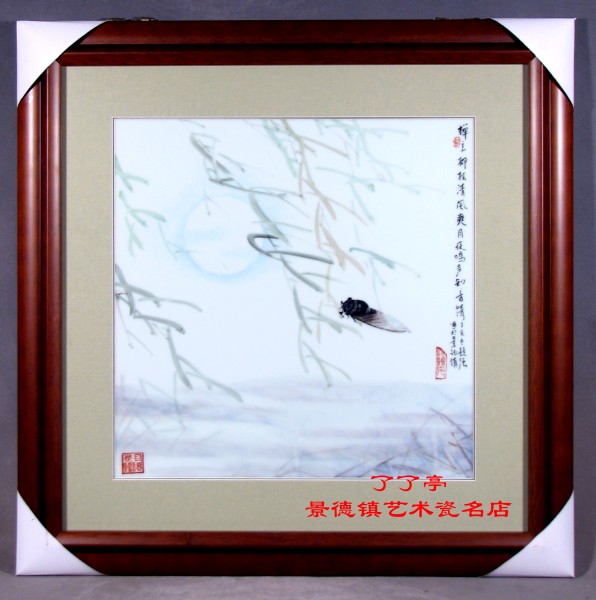 图为:“螳螂扑蝉”·B.青花轴里红斗彩·彭竟强