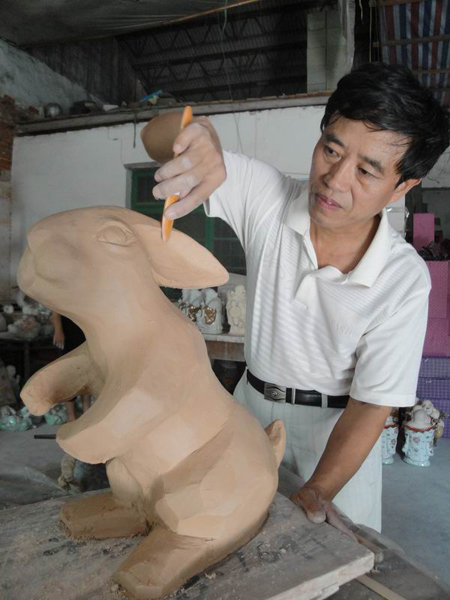 吴锦华:我目前从事的工作主要是陶瓷绘画,陶瓷雕塑应该是我另一项艺术潜能。如果说绘画和雕塑二选-的话,从个人喜爱和才能我都会选雕塑。仅因为年青时工厂制度的制约所以-直都在从事绘画至今,而现在在绘画方面取得的小成就又使我不能放弃绘画,过几年如视力不行了我会去做雕塑。感谢父母的恩赐使我同时具备了绘画和雕塑二方面的才华,我会珍惜同时也会贡献給大众。辛卯兔是朋友的迠议所做的第一款生肖雕塑,也是为了大众收藏爱好者都能收藏得到本人作品,(我的绘画作品都是孤品,存世量较少)。辛卯兔创作理念是:集累全部的智慧和力量,向着既定人生目标全力冲刺。灵感来源于刘翔的百米冲刺前的起跑瞬间动态。雕塑和绘画一样都要有主题,寓意育人。不同的是绘画主题可用配景衬托,而雕塑只能用型体单独说话,这重要的就是你塑造的造型能够表达出你的思想。