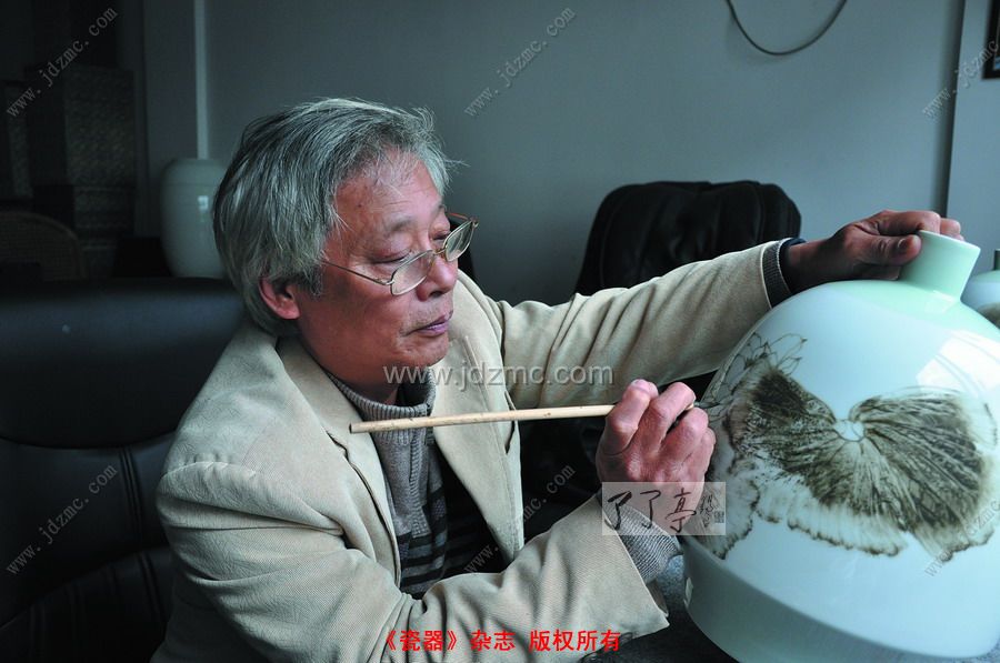 从上世纪60年代初设计《月夜飞雁》画面在为民瓷厂投产,到瓷用化工厂设计《连年有余》《缠枝牡丹》花纸热销,再到50多岁退养从事艺术瓷创作、开创“浅粉彩”陶瓷彩绘,胡光震用自己的才能与智慧在陶瓷大花园里默默耕耘,探索出一条属于自己的、也是世界的陶瓷艺术之路。