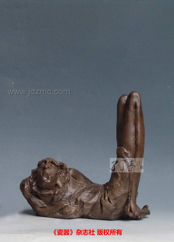 在他位于雕塑瓷厂明清园名人作坊内的工作室里,可以看到其雕塑作品——《达摩》,这件中国陶瓷设计艺术大师的参评之作,造型概括生动,生动而准确地表现了达摩十年面壁的坚毅执著。虽然作品是静态的,感受到的却是值得欣赏和尊重的精神内核。