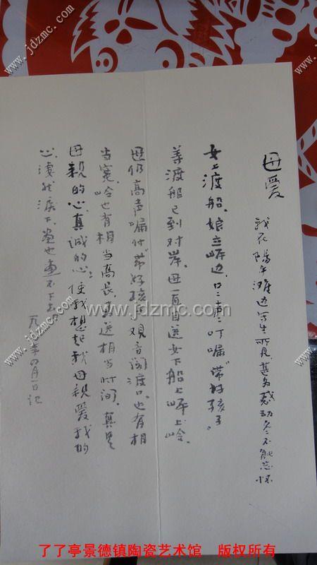 首先,大师之大,大在厚积薄发,学养精深。陶瓷艺术是一项综合性很强的艺术,离不开扎实的文化修养。由于学养丰富,王锡良先生的作品往往立意高妙,意蕴丰美,跳跃着思想之火,闪烁着人文之光。当年为了迎娶爱侣黄迎子,他即精心绘制出以唐人窦后设雀屏比试射术招婿的典故为题材的瓷板画并传为佳话;抗战时期,他根据屈原的《天问》、文天祥的《正气歌》、岳飞的《满江红》和陆游的《示儿》等诗词名作为题材而创作的系列瓷画,表达了强烈的爱国主义思想,受到艺术家和鉴藏家的好评。王锡良先生还曾画过一块大瓷板画,画面上两块巨石凌空对峙,中间仅见一线天光。因其中一石似高扬的风帆,王锡良先生便巧化唐人王湾诗句“风正一帆悬”为“石正一帆悬”作为作品题跋——一字之改,顿生妙趣,令人拍案叫绝。这些瓷艺佳作,以模仿克隆为能事,缺乏深厚的学养功底者是画不出来的。