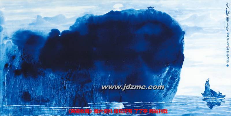 孙(笑):作品《喜相逢》,是3尺6的大瓷板,源自小说《三国演义》里的“一杯浊酒喜相逢”(注:这里其实也是孙老师一种人生态度体现,旷达,超逸,纯正),一片月亮,两人江上泛舟对饮,岁月过往尽在不言中……我很喜欢这种人生意境。我没有文化,搞绘画的人,要想画好,要学习古典文化。古代诗词意境是最丰富的,自己喜欢看看《全宋词》、《全唐诗》等等。中国画的核心是画意,我尽可能体现这些东西,不过自己感觉体现得不是很好,但自己这个方向是认定它了。