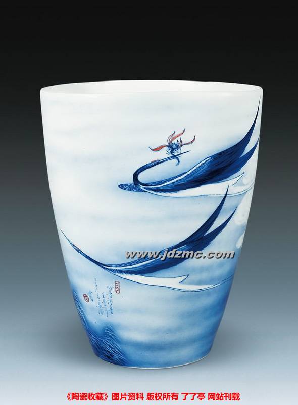 马俊认为,陶瓷绘画艺术创作追求的最高境界是陶瓷艺术家的自我精神与宇宙世界生命意识的融合,从而达到忘我或无我的超自然境界。陶瓷艺术家不是纯粹在创作,而是借创作来传达陶瓷艺术家的自我修养、审美意识,是陶瓷艺术家的精神世界与被创作陶瓷艺术作品的物质世界融为一体。马俊的作品通过青花料色浓、淡、深、浅、干、湿的变化来表现丰富的光与色的韵律和作者的思想情感,以平淡、朴素、悠远而含蓄的方式表现一种高雅脱俗的情调。