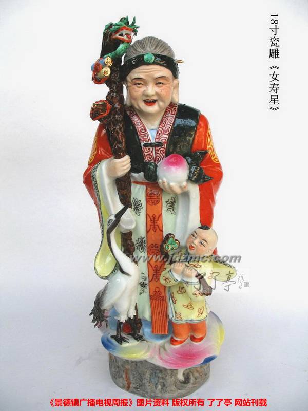 众所周知,传统的瓷雕里面寿星是位和蔼老爷爷的形象。曾经有人为庆祝冰心女士大寿时送了尊老寿星给她,冰心女士便打趣地在她的文章这样写道,你们手工艺人是不是太重男轻女了,连老寿星也只有男人的形象。这篇文章无意中被张正海看见,深受启发,“为什么不创作一尊女寿星的瓷雕呢?”