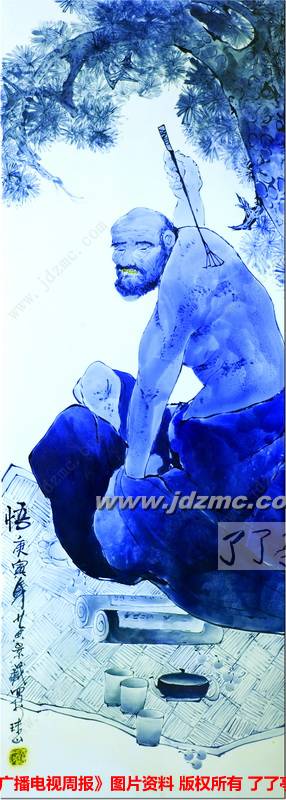 黄景藏将传统人物画的造型与青花大写意笔墨的同构关系拓展到一个全新的高度。当黄景藏进入到这种创意情绪时,大脑中会产生许多奇异的符号、神奇的音乐、动人的诗歌,而这些意向的东西相互碰撞,又产生了新的符号、新的乐章和新的诗篇,这是他发自内心的一种艺术情感的强烈喷涌。