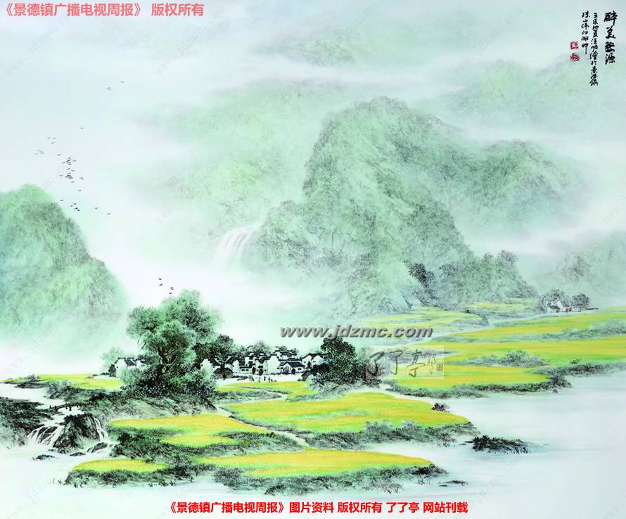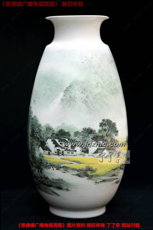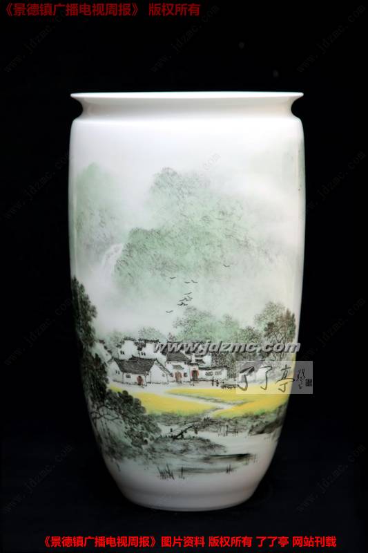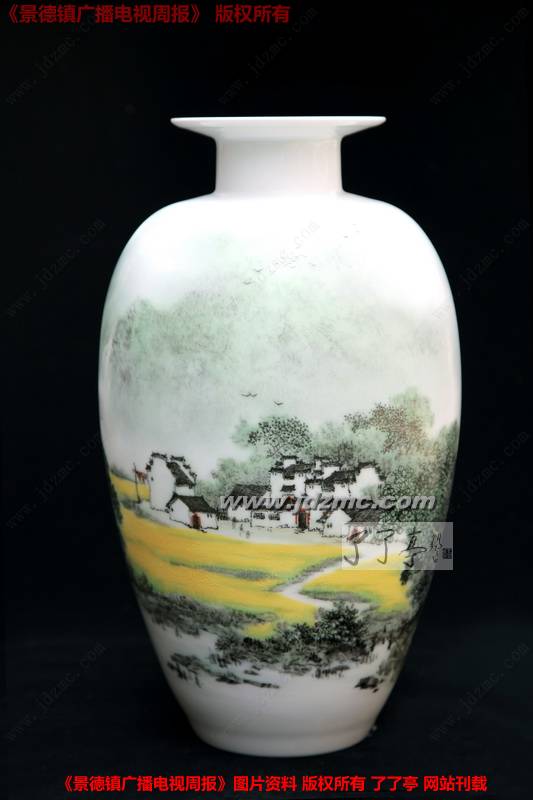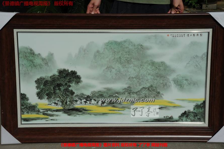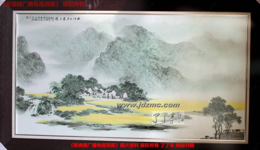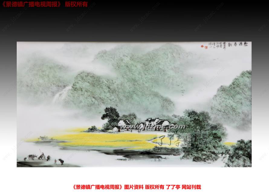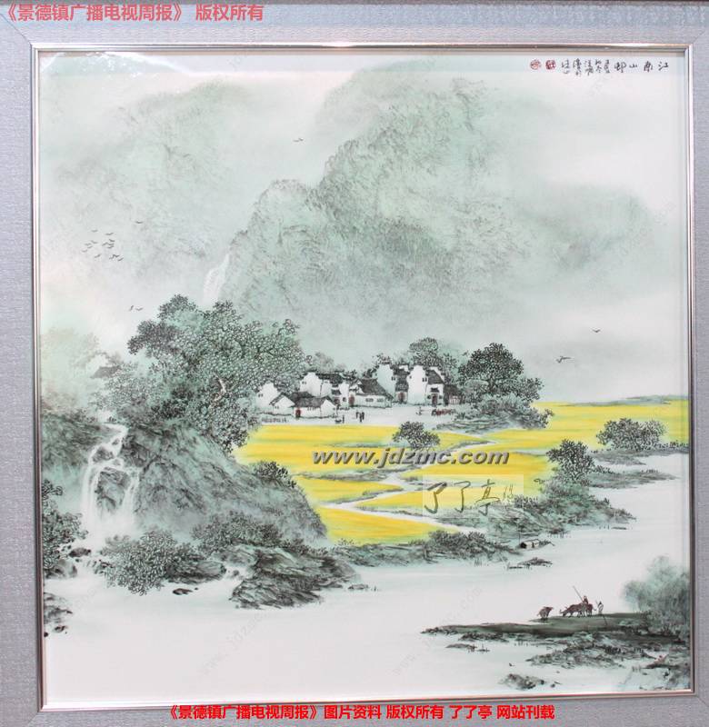 汪明说: “作为江西人,我觉得有必要把家乡的风光融进我的艺术中,让世人知道江西有多美。”瓷画《春满泉坤》是汪明去婺源写生有感而发的一件佳作,画面中,金黄的油菜花田,空旷的山谷,淡淡的云彩,仿佛让人置身画中,让还未到江西婺源,还未亲见油菜花的明媚的人,就已然通过他的画作感受到那份悠远江南的魅力了。