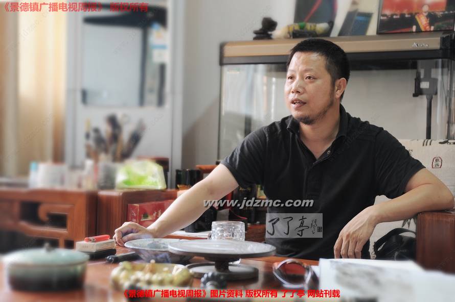 正当事业顺风顺水的时候,汪明在“老厂”结识了来买瓷坯的景德镇高专美术教授王维安。王维安很欣赏汪明的画,只不过他觉得汪明的瓷器只能算是陶瓷产品,不是陶瓷作品。这番话对汪明影响很深,经过深思熟虑之后,汪明决定放弃经营正红火的瓷器店,开始潜心研究陶瓷,研究如何创作出自己的陶瓷作品。