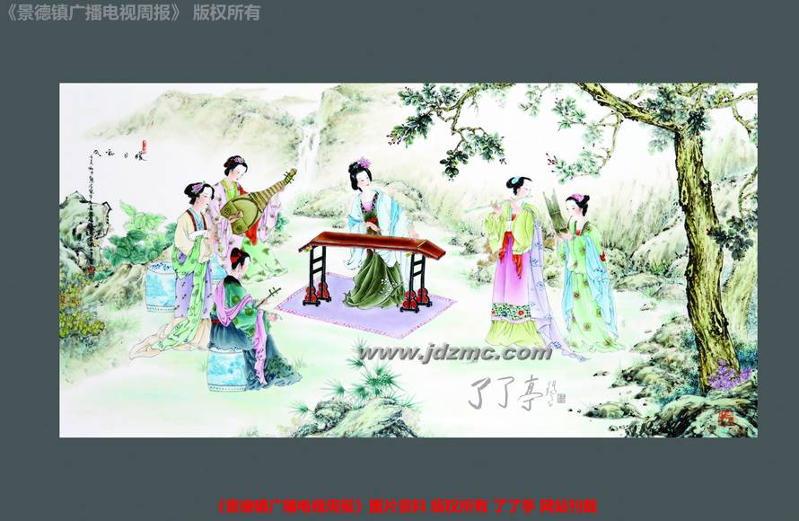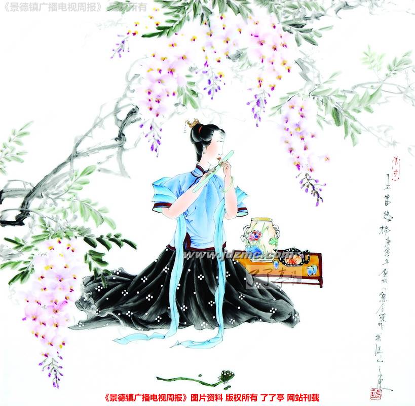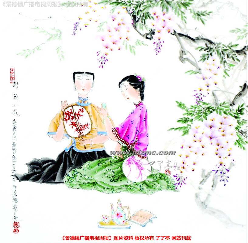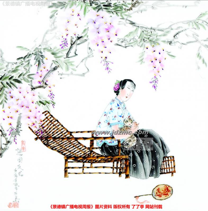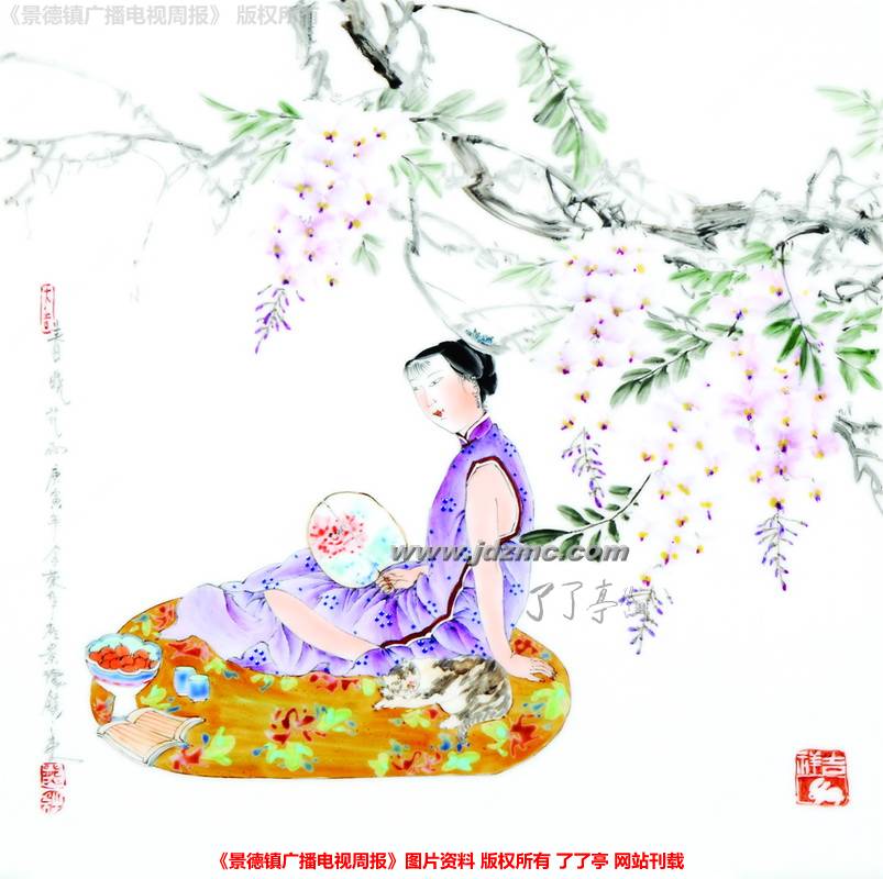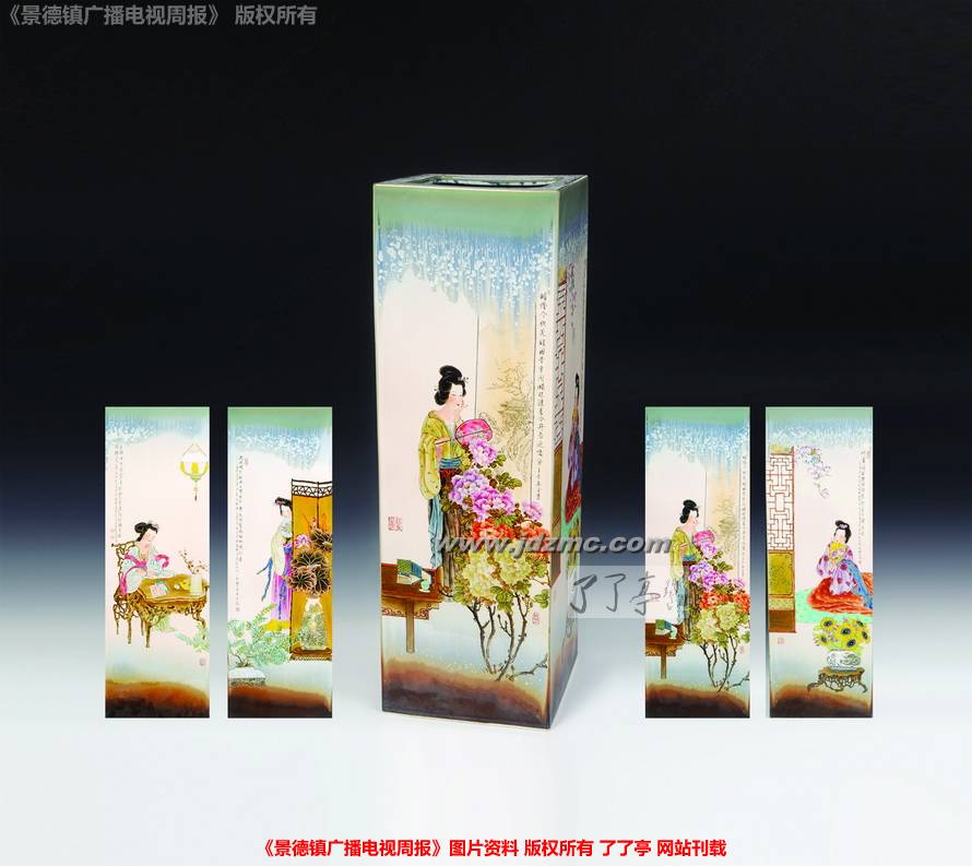 熊金荣带着些许期盼再次参加了杭州艺博会,《唐韵》就挂在他展位显眼的位置,凡经过此处的参观者都会停下脚步,仔细端详一番瓷画中的几位变形的美女,她们是那么的气定神闲,是那么得让人具有想象的空间。