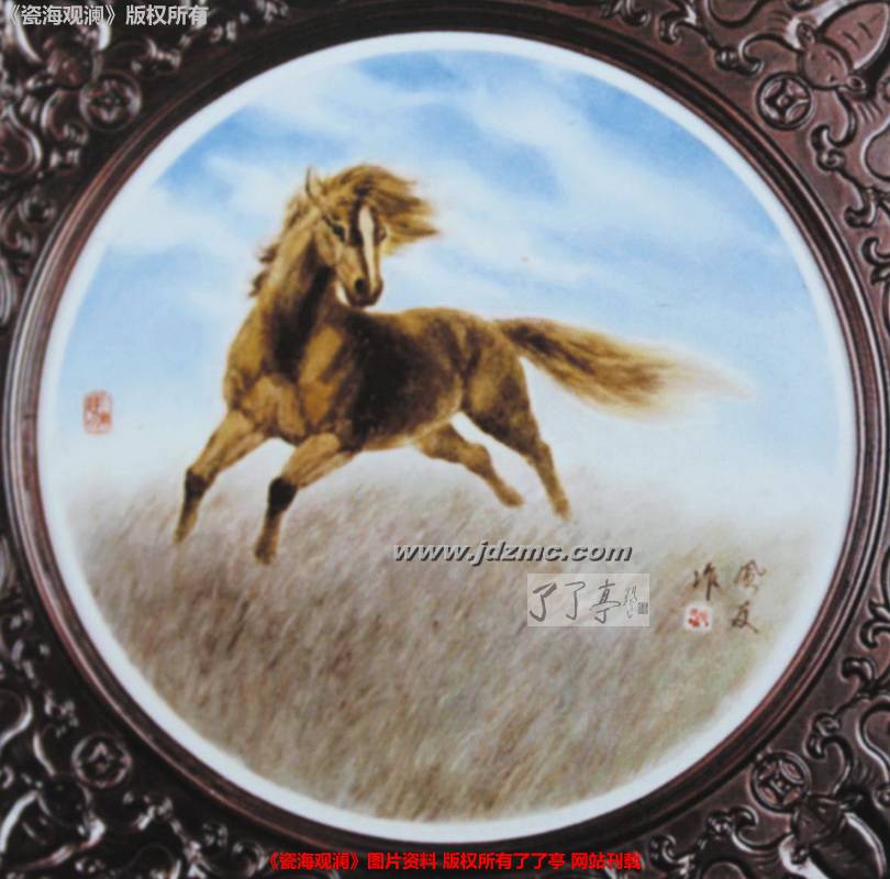 只要天气晴好,精神状态又佳,张育贤便会在工作室内呆上一天,潜心在光洁的瓷板或瓷瓶表面作画。已过从心所欲之年的他并不愿服老,可视力的下降却让他陶瓷雕塑创作受到限制,难以再塑造出精微的瓷塑作品。尽管如此,张育贤却承担着中国轻工业陶瓷研究所生肖礼品瓷的研制任务,从2003 年的羊年至2012 年的龙年,他几乎每一年都推出一款受到市场欢迎的生肖瓷。唯一的一次中断是在2004 年的猴年,研究所出于对老同志的照顾等考虑暂停生肖瓷研制,被兄弟单位趁虚而入抢占了不少市场。