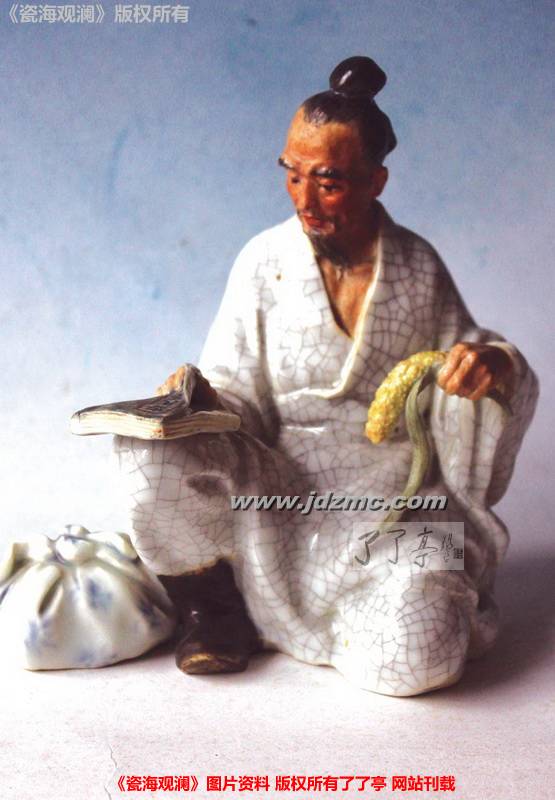 其实张育贤不仅能雕会塑,而且擅画,能利用高温颜色釉变化多端的化学特性在瓷坯上呈现出丰富多彩的艺术效果。与未曾接受过良好教育的瓷雕老艺人不同,堪称陶瓷艺术多面手的张育贤自幼接触中国书画艺术,后又进入艺术院校学习,工作后又得到民间知名艺人的指点。