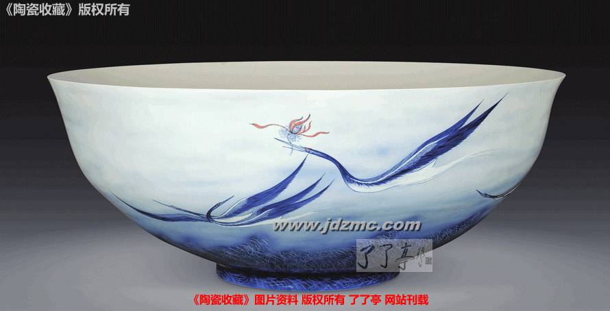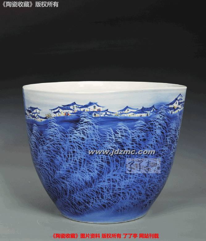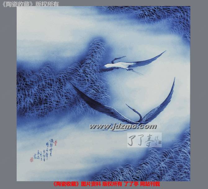 马俊一直强调作品的民族性,这不仅是因为民族的是世界的,更因为他内心对中国传统文化的热爱和对陶瓷工艺的赞美,他用自己的画笔蘸满对陶瓷艺术的厚厚深情创作了一件件陶瓷艺术精品。他的“青花分水半刀泥芦苇”系列作品已然成为了他的艺术风格和艺术语言,甚至是独属于他自己的艺术符号。让人们一看到他的作品就想到马俊,一谈到马俊就在脑海中浮现出一幅幅芦苇摇曳、仙鹤飞舞的美景。