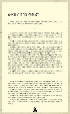 2007 年6 月3 日,孙同鑫被中国文联、中国民间文艺家协会评为“中国民间文化杰出传承人”。此前的5 月21 日,中央电视台10频道《人物》对他进行了专题报道。