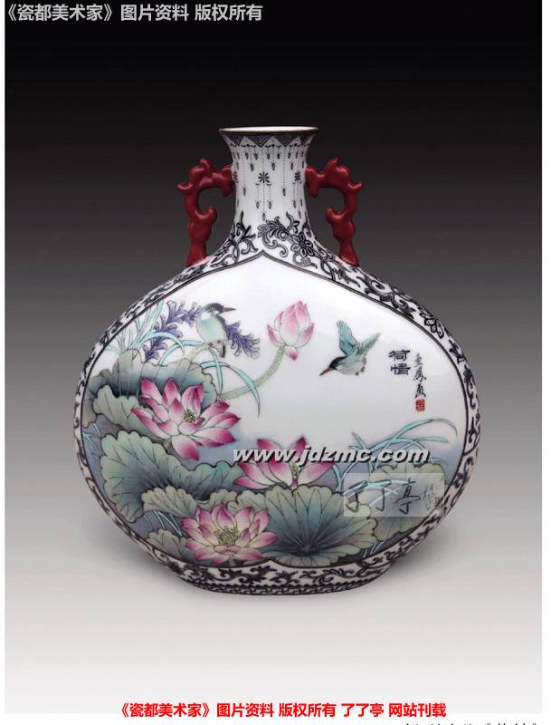 因此,徐亚凤的作品深受人们喜爱。1978年设计的《红梅》天球瓶被选送北京参展并获二等奖;1982年设计的《水点桃花》酒具获全国陶瓷评比二等奖;1983年设计的“水点桃花小鸟”大号水筒在全国同行业陶瓷评比中获优胜奖;1987年设计的釉下青花无光釉《葫芦小鸟》瓶获景德镇市优秀文艺作品奖;1993 年设计的《蝴蝶兰花》瓶获江西省工艺美术大奖赛大师一等奖,粉彩花鸟蝴蝶瓶被江西省工艺美术馆收藏;1999年设计的《春风扬柳万千条》瓶入编《伟人瓷韵》画集并获奖;2002 年设计的澳门回归《母子连心》瓶和《樱粟花》瓶入编20 世纪《中国陶瓷大观》画集,《樱粟花》瓶被中国历史博物馆收藏;2006 年徐亚凤和她的《荷塘清香》《水点桃花》《幽兰飘香》《屏开富贵》《桃花小鸟》等作品入选国家邮政局发行的《景德镇陶瓷名家明信片》。