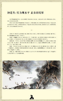 钟莲生的原籍是江西萍乡,1944年出生于一个书香门第,自小受良好的家庭教育和文化熏陶,4岁入校就学,上个世纪60年代初,以优异的成绩考入景德镇陶瓷学院美术系中专科。就是这样一个中专生,20岁不到的时候便以雄厚的实力在业界崭露头角了。1964年,钟莲生在他毕业后的第二年,画出了一幅大型人物国画《红雨随心翻作浪》,入选全国美展华东地区展。之后,他又创作了七八本逾千幅连环画。
