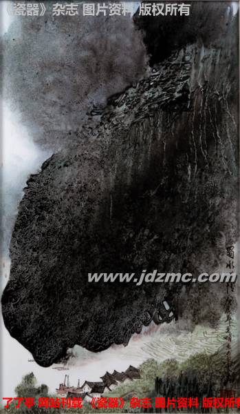 舒惠娟的山水装饰画还巧妙地利用彩绘工艺中的樟脑油冲迹法,犹如中国画中的泼墨写意,胸有成竹地把握住峻岭气势和山脉去向,在适当之处用精工之笔描绘点缀之物,使之粗中有细,兼工带写。这是原高岭陶艺学会副会长张学文对她作品的评价。