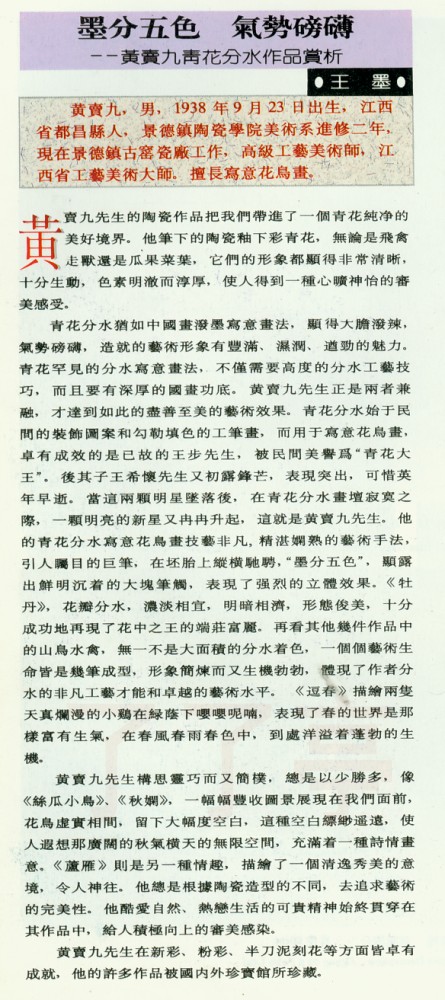 | 墨分五色气势磅礴—黄卖九青花分水作品赏析 95年资料 | |||||