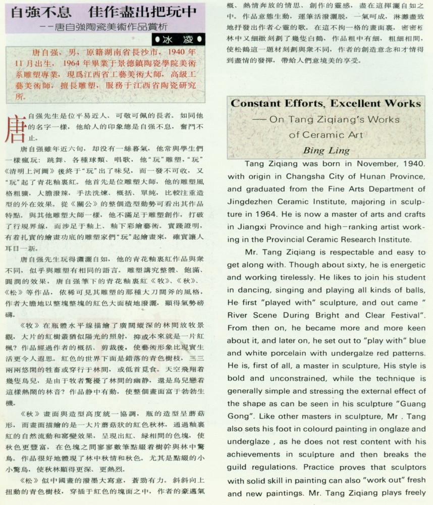 | 自强不息佳作尽出把玩中—唐自强陶瓷美术作品赏析 95年资料 | |||||