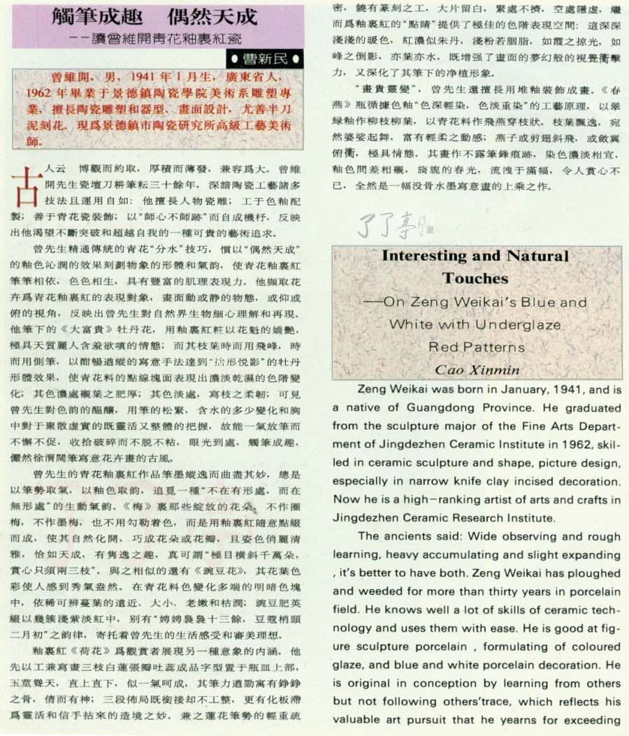 | 触笔成趣 偶然天成 —读曾维开青花釉里红瓷 95年资料 | |||||