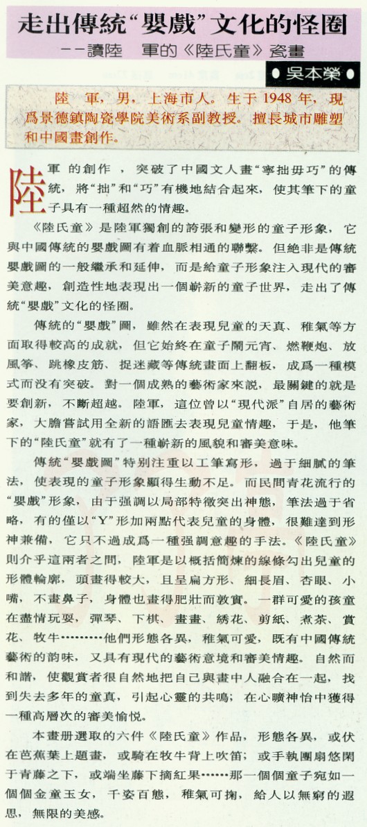 | 走出传统“婴戏”文化的怪圈—读陆军的《陆氏童》瓷画 95年资料 | |||||