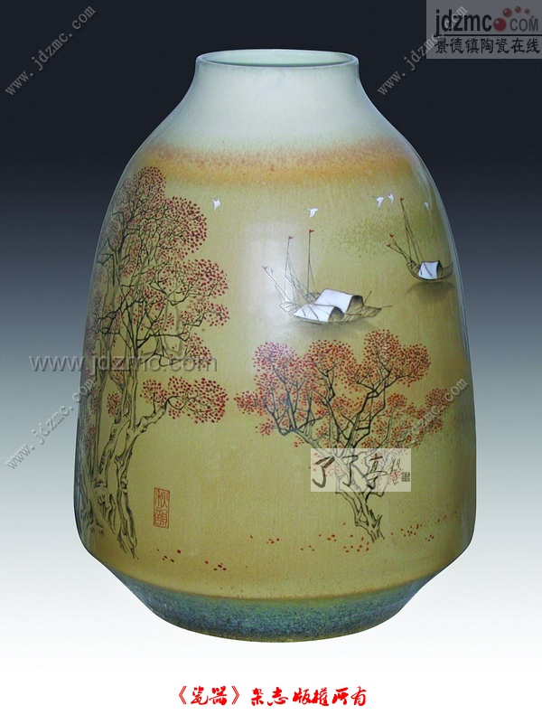 《瓷器》萱雨 冯绍华是一位钟情于陶瓷设计的陶艺家,他以饱满的热情和非凡的才情创造出了琳琅满目的作品,美轮美奂,美不胜收。 1989年,他的色釉装饰《叶纹》获全国陶瓷评比一等奖。那是他第一次参赛,也是他第一次获奖。在此之后,他一发而不可收拾,连连获奖,现代陶艺《惠风》获首届景德镇国际陶瓷评比金杯奖,陶瓷综合装饰《书魁》获全国陶瓷评比一等奖,陶瓷综合装饰《秋韵》获全国教师优秀美术作品评比金奖,《情侣咖啡具》获中国礼品设计大赛金奖,《仙酒酒具》获中国首届酒品包装设计大赛最佳创意奖,色釉装饰《水乡》获国家珍品奖,色釉综合装饰《怡然自得》获江西省政协主办的以“和谐创业责任”为主题的美术创作一等奖,陶瓷综合装饰《秋韵》、《瑞雪丰年》获江西省美术教育成果一等奖……他先后获得国家和省部级奖60余项,被人们称为“获奖专业户”。 纵观其作品,题材多样,形式多变,有的是因造型生动别致,有的是因画面温馨考究,有的是因色彩层次丰富,有的是因意韵深远悠长,然而,它们有一个共同点,那就是创意的独特,构思的巧妙,充满了精巧灵动的艺术气息。 现代陶艺《惠风》画面简洁,却立意高远,一弯秋水,一行白鹤,一丛疏林,一位宽袍大袖的老者,处处让人感受到远离尘嚣的宁静。正是“琴惊松涛,鹤举云海,惠风和畅,自然天成”。这件作品以其内容与形式的和谐获1990年首届景德镇国际陶瓷评比最高奖———金杯奖,这是当时陶艺类唯一的金奖,当年的全国陶瓷评比中这件作品又获得一等奖。 超万件对瓶《盛世之歌》现陈列于上海市政府办事大厅。这件作品的成功设计为赣沪两地的文化、经济交流搭建了平台,取得了良好的社会效益。《盛世之歌》高达2.8米,造型恢宏,气象阔大,作品布局疏密有致,以开光构图的方式,绘制了“龙腾盛世”、“鹰击长空”等丰富的画面,作品大气率真,富有很强的装饰韵味,体现了中华文明的源远流长和赣文化深厚的文化底蕴及与时俱进的时代精神。构思上阳刚与阴柔共存,激昂与繁华同在,这正是一曲神采飞扬的盛世赞歌。 色釉装饰《叶纹》以真正的树叶粘于瓶身上进行烧炼,高温烧成后,树叶已无踪迹,而瓶身上却清晰地留下树叶的纹理,别有情趣;陶瓷综合装饰《书魁》分为上下两部分装饰,上半截刻花,局部不施釉,下半截施青白釉,绘写意的青花人物,不仅有粗犷与细腻的质感对比,又有青与白的色彩对比,还有线条与色块的繁简对比。 色釉装饰《瑞雪丰年》色彩丰富、热烈,艳而不俗,华丽丰实。皑皑白雪、大红灯笼充满了诗情画意,作者表现了北国瑞雪丰年的生活场景,温馨、典雅,给人以美的享受。《圣贤》作品,采用釉里红、粉彩等综合处理手法,松树下贤士雅集,作者刻画了不同人物的性格,神态各异,艺术格调高雅。作品《怡然自得》色泽清新、典雅,一群丹顶鹤在沙滩上啄食、飞翔,画面简洁、空旷,具有强烈的现代感,作品获江西省美术创作评比唯一的一等奖。青花《北国雪韵》等风景山水系列作品风格独特,画面气韵生动、别具一格,给人以美的享受。作品《紫气东来》构图疏密有致、色彩明艳清新、青花釉彩两相辉映、寓意吉祥。《荷塘情》系列作品,构思新颖,构图疏密得当,用色雅致,以亭亭玉立的荷花为主体,荷叶翻转自如、荷花点缀其间,或鸳鸯、或蜻蜓、或游鸭,在构图上的出现,更增添了动感和活力,好一幅大自然和谐的场景画…… 冯绍华就是这样一位认真的设计师,他严谨地对待每一件作品,这使得他的每一件作品几乎都成为精品:现代陶艺《惠风》被日本美术馆珍藏;陶瓷综合装饰《书魁》被日本恩巴美术馆珍藏;青花釉里红《凌霄花》作品被江西省博物馆收藏;陶瓷综合装饰《秋水》被中国工艺美术馆收藏;青花《鹭鸶》参加中华人民共和国成立50周年成就展;为香港回归祖国设计的系列纪念盘影响巨大。 大学毕业后,在江西省陶研所工作,他的许多优秀作品均是在此创作出来的。再后来,为了更全面地展示自身价值,他毅然选择了做一名教师,他说,这样不仅可以培养出更多的陶瓷设计师,而且可以给自己更大的创作空间和时间,同时年青人的蓬勃朝气也会带给他更多的创作灵感。 事实也确实如此,今天的冯绍华,神采飞扬,容光焕发。他先后被评为“景德镇市先进个人”“瓷都十大新闻人物”“陶瓷集团优秀科技工作者”“景德镇学院中青年骨干教师。中国中央电视台、《人民日报》、《文汇报》、《江西日报》、《景德镇日报》、《瓷都晚报》、台湾《陶艺》杂志、马来西亚《星洲日报》、台湾“八大电视台”、浙江明珠电视台、景德镇电视台等众多媒体对其进行了专题报道,他的个人传略被编入《中国专家人才库》、《中国当代学者大辞典》、《瓷都景德镇历代艺术名人录》、《景德镇陶瓷百家》、《瓷韵伟人》等众多的大型书籍中。 |