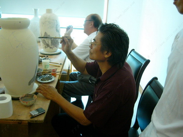 李老的陶艺创作十分注重语言的锤炼,依托深厚的油画功底,借助扎实的绘画技艺,潜心于人物瓷画创作,在山水、花鸟、走兽瓷绘,作品线条多吸收民间的青花手法,他侧重于突破现有的工艺美术价值观念,挖掘现代文化的深层构建,倾心于对社会、人生、历史和自然的体验,用以表达自己的艺术思想,寄托自己的审美情趣和艺术个性。如《京剧人物》、(范仲淹)、《长河日下》、《秋雨梧桐》等陶瓷美术作品,构图气势恢宏,用笔潇洒豪放,汲取东方文化精髓,借鉴西方传统和现代美术技法,其风格力求古朴而新颖,雄劲而壮美,处处跃动着先生之真情真性,具有很高的艺术品位。