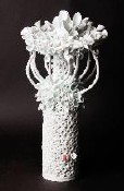 这是一种给人全新感觉的瓷艺作品,一种地地道道的景德镇现代瓷艺,而不是所谓的陶艺作品。瓷都景德镇不会排斥陶艺,但真正能体现和代表她的身份和水准、声誉的,应该是瓷,而不是陶。任瑞华教授认为,陶的材质粗砺色浊,展示的是豪放阳刚之美;而瓷的材质细腻洁白,显示的是冷艳阴柔之美。任教授的系列雕塑作品之所以称为.意象瓷艺雕塑.,是定位于.瓷.,当属正本清源。他在创作时,把瓷的材质和工艺特性运用发挥到了极致。且看任教授最有代表性的《岁月荷莲》。该作品的主题意象与材质形式是那样完美统一..荷花.出淤泥而不染.的高雅气质与品格内涵,就是中国传统文化中人格精神的象征符号;它与高白泥材质肌理所体现出来的洁白无瑕形式感,珠联璧合地融为一体,给人以强烈的艺术感染和思想震撼。也正是在这件瓷艺作品面前,美国陶艺家协会主席韦温·海格比教授感动得连声称赞:.像天上的行云,如地下的流水,像一首美妙的诗。.