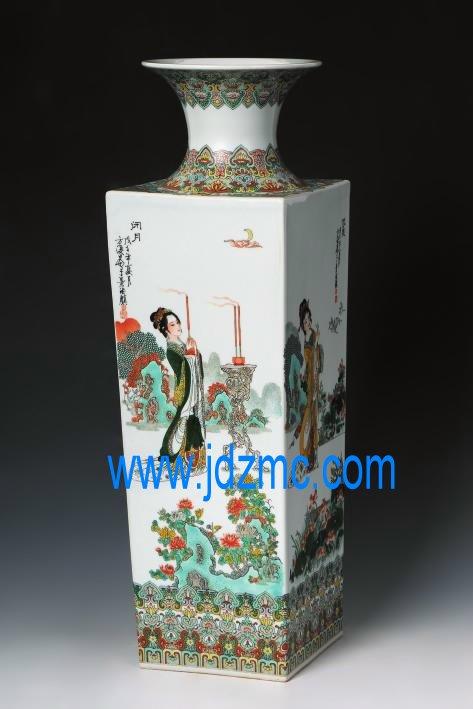 ②永远为美的奉献精神:康熙五彩的仕女人物是当时陶工远学前辈陈老莲;近学同辈吴友如、钱惠庵,借鉴杨柳青年画、新安木刻而自成一体的。优美的仕女人物身段、秀美的仕女脸蛋,富有灵气的树、石、草、点,是康熙五彩当年的立身之本,是古彩仕女的优秀传统。然而,当雍正粉彩悄然兴起的时候,康熙五彩(也就是今天的古彩)就成了民间艺人养家糊口的手段。瓷器在手中停留的时间短,没有足够的时间去思考,形象也没有足够的时间去修正。由于不了解上流社会妇女的生活,背景也千篇一律,形式化、程式化、概念化,从清末到民初每况愈下。直到段氏古彩的出现,古彩又开始兴盛,段氏古彩在古彩人物上的历史功绩是功不可没的。现在好了,退休后有丰厚的退休工资,有富足的创作时间,应该努力探求新路,使古彩艺术迈上新的台阶。这时倒使我想起青年时代的那种“赶超英国”的拼命精神。现在老了,各项条件都很优惠,就应静下心来为古彩画点可视作品,供后来人参考。“犬守夜,鸡司晨”,人应该尽点历史责任心;“蚕吐丝,蜂酿蜜”,人应该懂得回报社会。我的中专、大学是吃人民助学金、调干金,完成学业的,人民给予我一切,我要将一切奉献给人民。不能受商品经济的影响,一切向钱看,更不要受“大师现象”影响,为“大师”而奔走,浪费了对老年人来说非常宝贵的时光,在来日无多之时应多做点实事,要珍惜“夕阳红的灿烂与从容”,我要画古彩,画到生命的永远,给后世留点可以借鉴的作品。