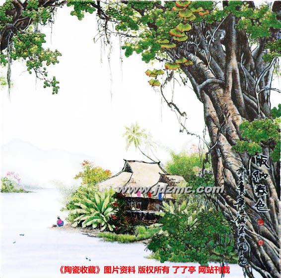 显然,郭教授是景德镇少有的思想者之一,极具艺术思辨能力,但这并不妨碍其作品的艺术感染力。新彩瓷板《版纳春色》画面开阔深邃、色彩柔润悦心、景色亲切自然,富有现代气息;《瑶里遗韵》韶秀清丽,让人陶醉向往,《云山清音》则古意盎然,意境悠远……艺术境界和感染力来自哪里?在给学生们上课时,郭教授曾专门论述过艺术思维与创作的关系——艺术有两个层面。一个层面是基本技法,是死的;另一个层面是艺术性的来源,包括感性、感悟力、修养、生活体验、内在品性,以及生活背景、生理因素、气质……等等综合性东西。感性,随感而发;理性,是通过理智的内心思考。感性表达还需要通过理性积累抒发出来。