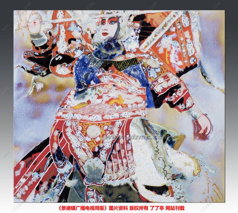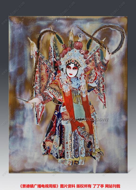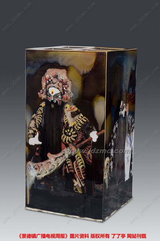 赵传玉:对章朝辉是“先认识画,后认识人”。章朝辉运用陶瓷颜色釉的语言来表现人物、戏剧等,具有个性和富有表现力。颜色釉的历史很悠久,但是其作为人物形象绘画的历史并不长。章朝辉是科班出身加上扎实的油画基础,以陶瓷的语言特色来诉说所要表达的内容,很好地体现了陶瓷艺术特征。现在陶瓷艺术焕发青春,繁荣起来,技术的进步给艺术家提供了更好的创作空间,辅助艺术家发挥自身的创作能力。陶瓷艺术表现形式包容性增强,可以以国画、油画、雕塑等形式呈现,但是当艺术家以国画形式表现时无法超越国画艺术家水平,以油画等形式同理,因此需要艺术家们引发思考。不过好在陶瓷艺术家可以凭借陶瓷这一特有材质,以好的材料和技术在表现上占优势,或在艺术上以更新的表现形式来体现。同时艺术家应以专业的态度来做艺术,不受市场的影响。章朝辉走在了颜色釉的前面,对待艺术的态度很认真,创新意识很强,以其对艺术的敏感度,紧紧把握住了颜色釉的魅力,将颜色釉的表现力和形式语言的丰富完善起来。颜色釉的表现形式有矛盾,章朝辉若以写实形式表现具有一定的难度,写意的不一定高于工笔,互不冲突、各有特色,因此可以凭借更贴切的形式进行突破,当认识与了解达到一定的高度时再进行更高层次的创作延伸。