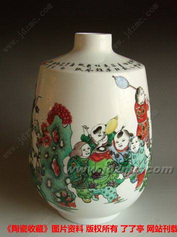 传统后面常常尾随着古板,就像大俗与大雅之间仅有一层纸的隔膜,多数人很难做到把握好这个度。景德镇高等专科学校的程幸教授从传统古彩画中脱颖而出,以清新中夹带着灵气,流畅里透露着严整的风格跻身陶瓷画坛,在当今才哲荟萃的景德镇殊属不易。就像她默默无闻的时候一样,人们现在同样不关心她在声誉后面所作的默默无闻、甘苦自知的努力。