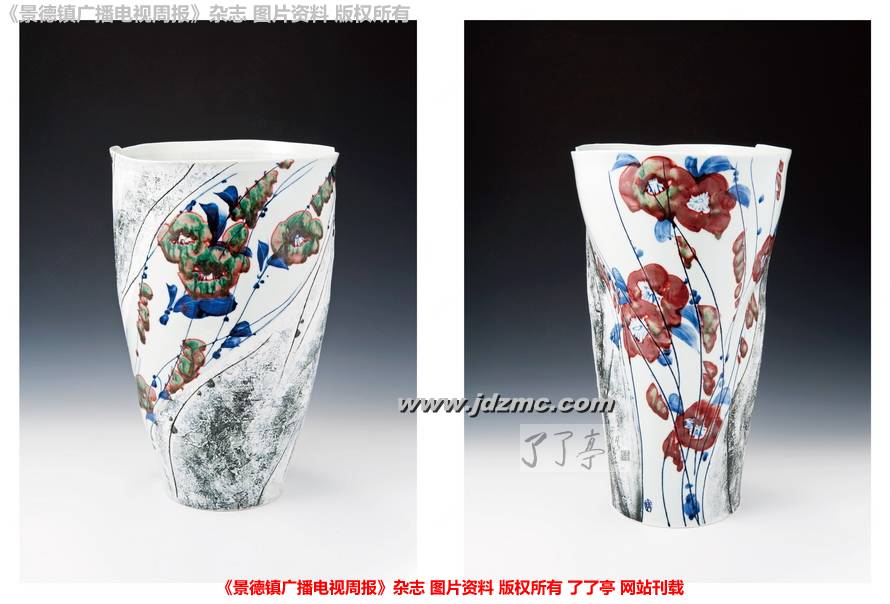 “张婧婧的作品力图探寻景德镇的民间青花与现代陶艺的契合点,把中国民间青花的抽象意味与现代陶艺的创作理念相结合,发掘个性化的创作手法。作品造型突破了景德镇传统以“圆”为基础的有限数理空间,使现代青花装饰载体的空间得到新的开放,形成丰富多彩而又极具个性的形体语言。” ——秦锡麟