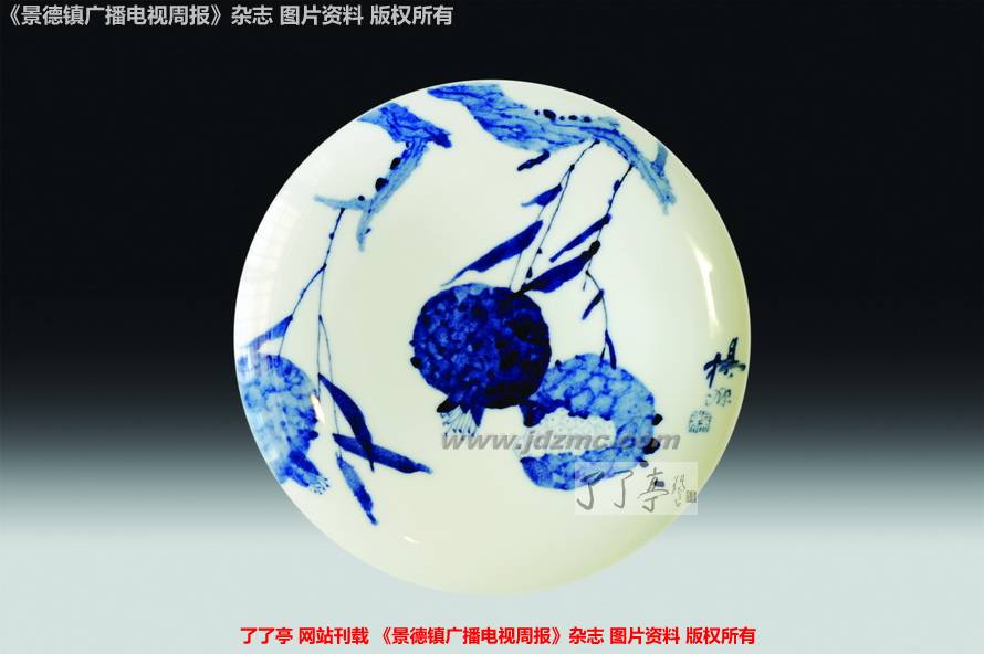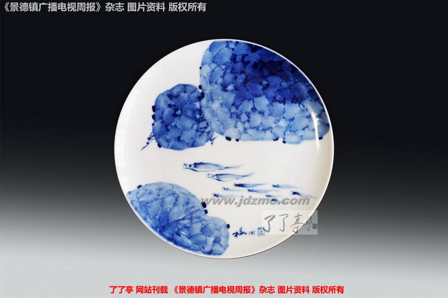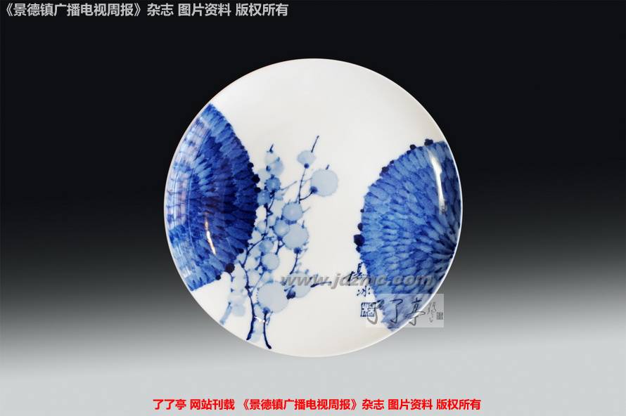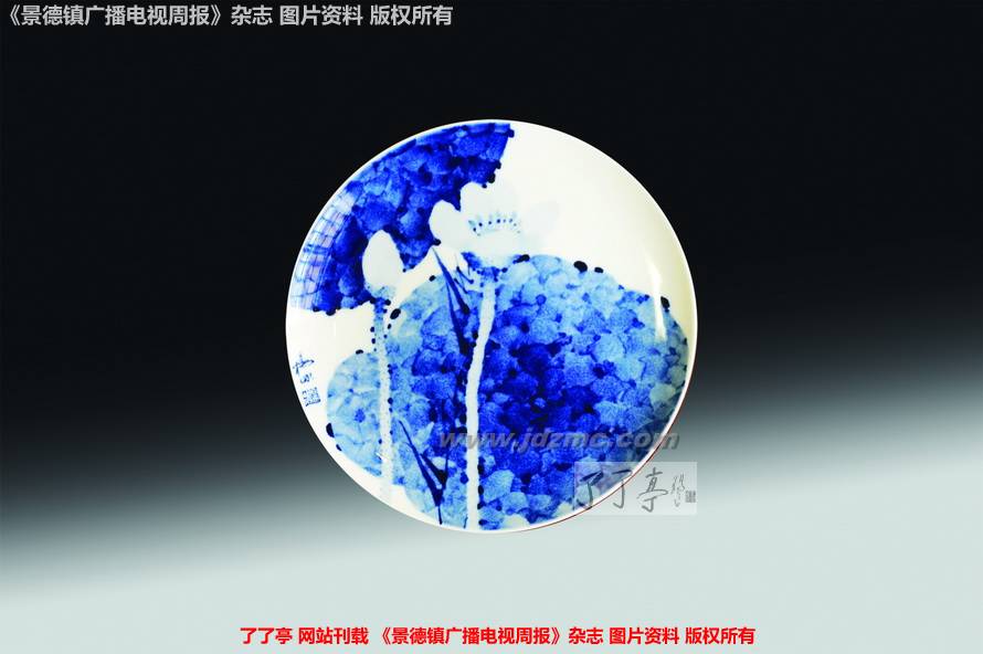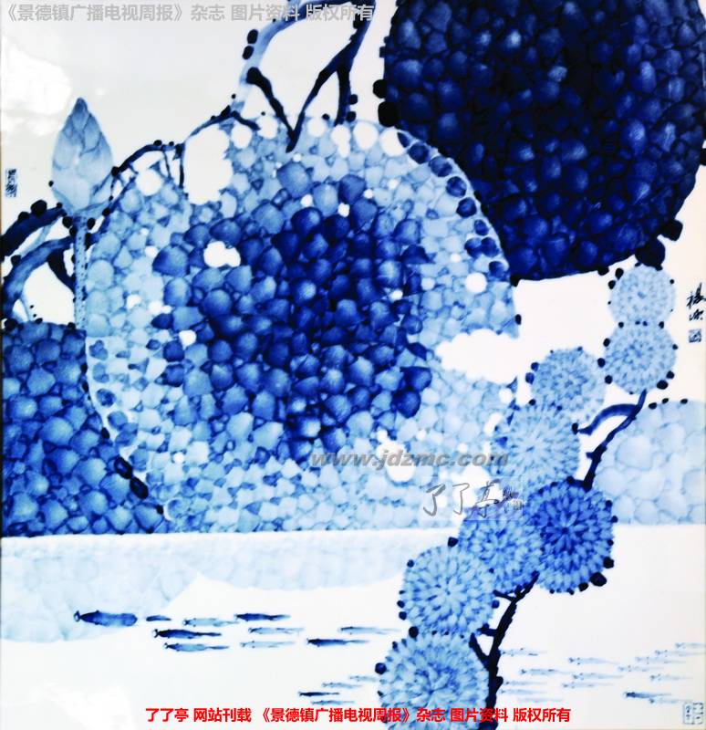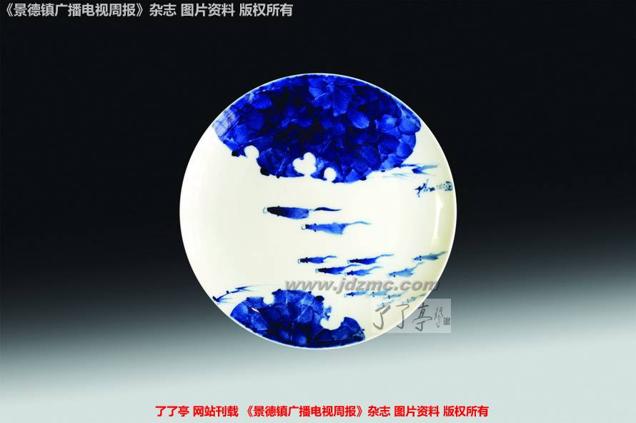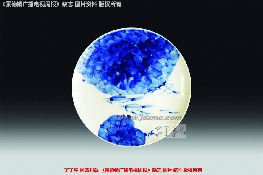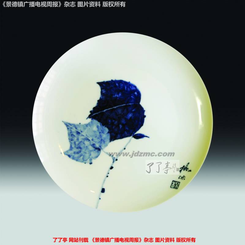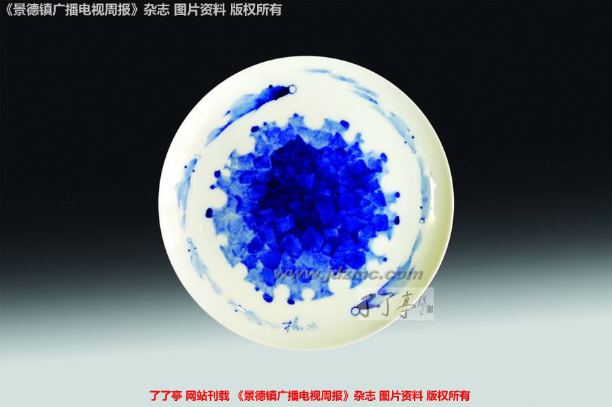 近几年来我一直致力于现代青花创作与研究,将中国画的笔墨理念与现代装饰趣味融合在一体,并且通过线条的粗细、疏密、点线等变化,即掌握整体黑白效果、大小块面及纹样组合的黑白空间。对大块青色的处理也突破了传统分水的局限性,将青色调成浓淡几种层次,运用笔融相接或叠加来表现大面积的色块。在线的处理上也改变铁线的单一性,非常自如地表现浓淡粗细的线的青色变化,构图上追求疏密、节奏变化,使作品酣畅淋漓,个性鲜明,有强烈的现代水墨韵味。