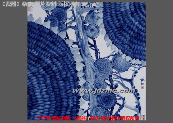 杨冰脱离了传统青花的图式,她的向日葵、荷花有别于那常见的宝相花、缠枝莲,以服务于其具有文人趣味的新装饰主义美学特征,从而决定了青花对水墨精神的脱离,以形成独特的表达自觉。