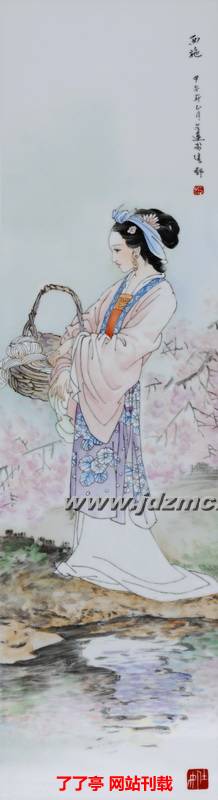 四大美女是中国画中一个被反复表现的题材,其国学内涵可谓众所周知——取自于流传已久的“沉鱼、落雁、闭月、羞花”故事。然而,2014年5月,杭州高盛文化有限公司却在众多四大美女题材的绘画中,遴选出景德镇陶瓷学院教授郭文连四条屏瓷板画《四美图》,制作成精美的丝绸彩印立轴画,之后该画又立即被中国丝绸博物馆永久收藏,以非文字的形式对这套作品进行了一种特殊评价。