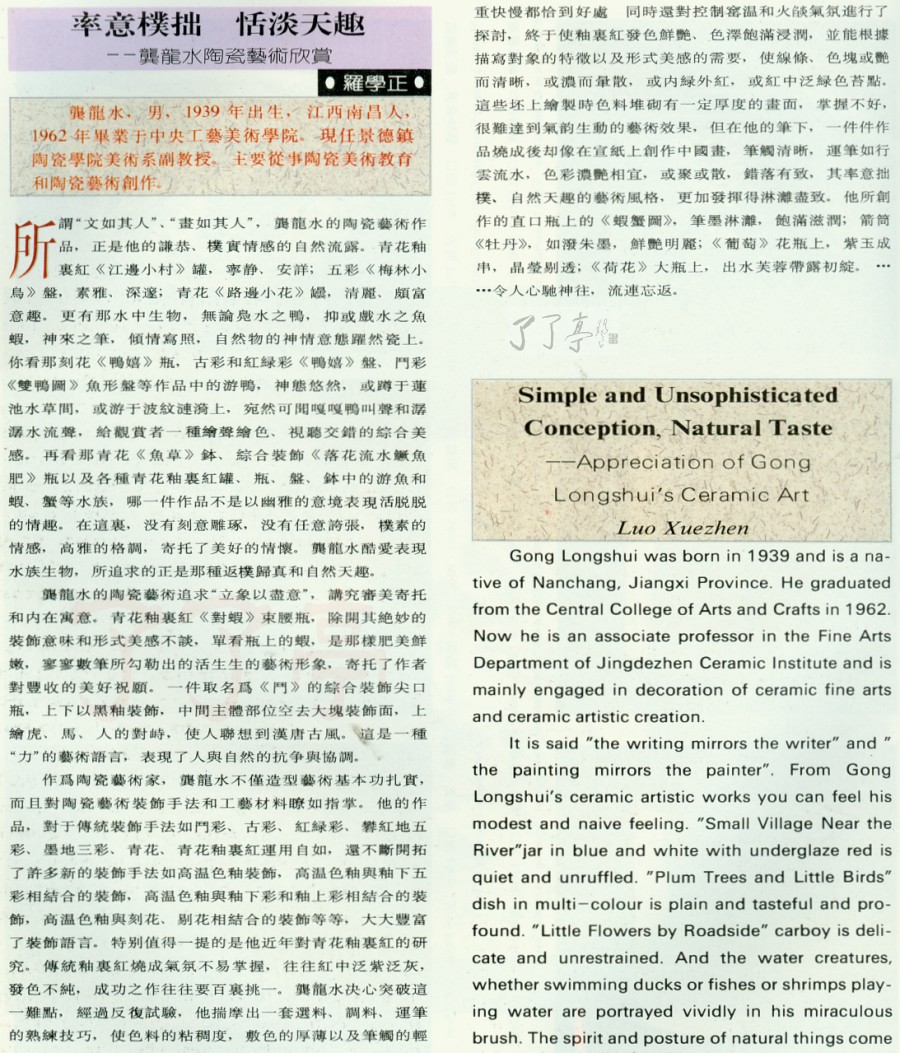 | 意朴拙恬淡天趣—龚龙水陶瓷艺术欣赏 95年资料 | |||||