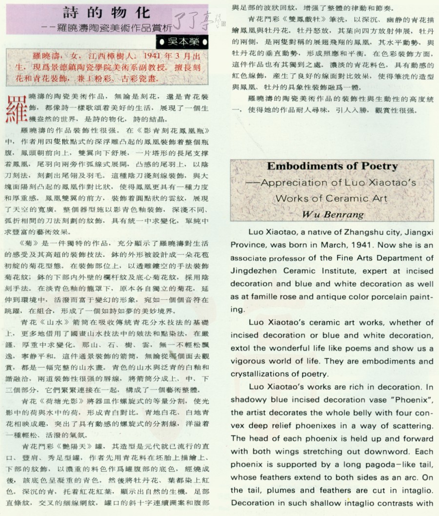 | 诗的物化—罗晓涛陶瓷美术作品赏析 95年资料 | |||||