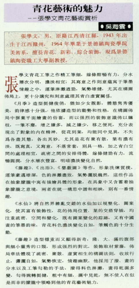 | 青花艺术的魅力 张学文青花艺术赏析 95年资料 | |||||