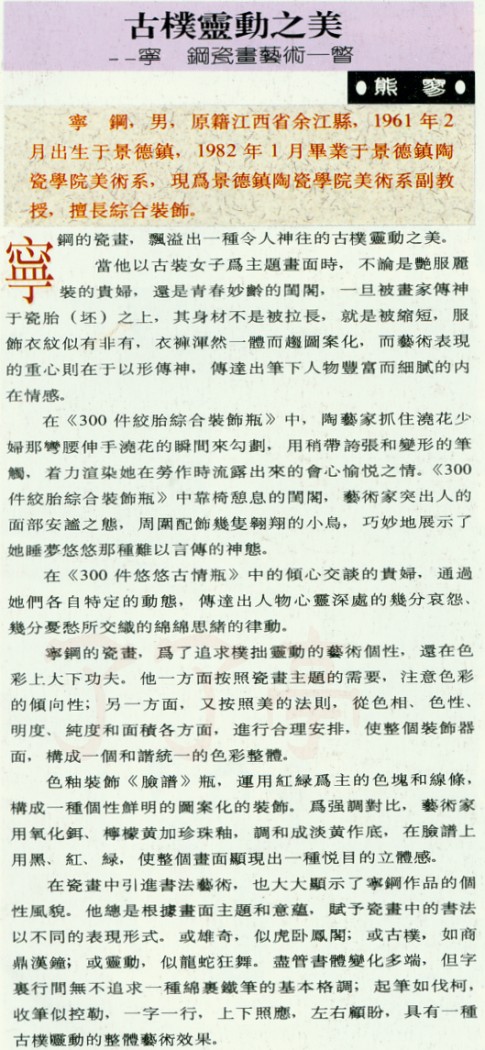 | 古朴灵动之美—宁钢瓷画艺术一瞥 95年资料 | |||||