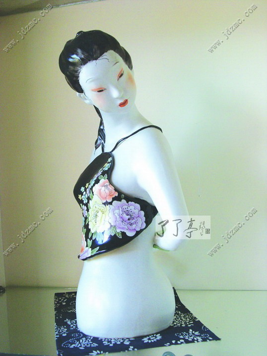 经过5年的相恋,2001年12月,周玲和来自上饶铅山的王敏结婚了,在陶瓷艺术的探索与耕耘中,两个相爱的人终于结为连理。周玲总结说,这都是缘分,要是跑到国外,月老都能把他拽回来,何况同在一个城市。 周玲婚后的生活是幸福的。既有工作的充实,也有家庭的温馨,既有爱语呢喃的浪漫,也有撕心裂肺的牵挂,这种感觉来源,就是与她同甘共苦的男人和一个能为她遮风挡雨的家。 这让周玲想起了老家,西北黄土地上的女人们。他们相夫教子,世代如此,男人外出耕作,女人做完家务后,苦苦等候,或坐、或卧、或思、或忧、或喜,男人成了他们生活的天,是她们情感的全部。 “乍暖还寒时候,最难将息。”那种思念的痛,那种等待过后的甘甜,那种在男人厚实的臂膀里撒娇的媚,个中滋味,只有女人自己才知道,这是从骨子里不经意中流露出的生活之美。就像前段时间,央视里热播的电视剧《走西口》里的窦华、翠翠和田青的姐姐。周玲所生长的那个城市,紧邻包头。 周玲将这些体验,以西北女性为原型,站在哲学和美学的高度,对女性内心世界进行了探索,这就是2004年周玲捧出的《暗香》。从瓷雕《晨曲》到《暗香》,是一个女孩到一个女人的转变。 作为人物造型,这组瓷雕仅以一方彩绣肚兜、一头刘海式盘发装束,十分夸张、简约、生动,把“中国风”张显得恰到好处。雕塑中的女人,或持一方手帕,或握一枚青果,或别一束小花,与肢体语言相得益彰,在波澜不惊中掀起阵阵遐思。 著名木雕艺术家张所照,看完这组作品后说:“周玲的这些作品,有所谓‘暗香’之说,实质上这是她在传统人文精神的影响下的一种潜意识的流露,通过陶瓷语言表达女性世界的理想、信念和价值取向,为人们献上了一瓣充满女性情趣的生意昂然的心香。”