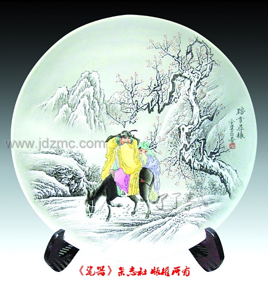 《瓷器》记者 李广明 年过半百的余双喜在新桥的花鸟市场寻了个僻静之所做工作室,一个人安静地在里面创作,外面是鸟语花香,虽有时案牍劳形,但也算悠然自得,兀自沉浸在霁雪漫天的经典故事里,比如《风雪访贤良》、《雪夜归庄》、《风雪楼台》、《踏雪寻梅》等,充满着古典的人文气息。 余双喜学画雪景一半源于家传,其父便是小有名气的雪景画师。余双喜的父亲曾在艺术瓷厂工作,因酷爱雪景,便时常去雪景大王余文襄老师处观摩,两人虽无师徒之约,但余文襄却乐于悉心指导好学的年轻人。 时光荏苒,从小和父亲学习雪景的余双喜21岁进入新光瓷厂工作,因为其画雪景基础很好,厂里便让他专心画雪景,余双喜也很珍惜,笔耕不辍。 巧合的是,余双喜继续着他家与余文襄老人半个师徒的缘分。要画雪景就抹不开余文襄这个雪景大家,余双喜便也时常到余文襄老人那观摩学习。看到余双喜迫切想学,余文襄也受了感动,便时不时提点余双喜的雪景山水。 余双喜第一次画的一套雪景屏风,便是余文襄老人教导的,余文襄拿来同等比例的宣纸,手把手教导余双喜构图。其后当时年过古稀的余文襄先后三次步行到新光瓷厂指导余双喜,许多人都为余文襄老人提携后辈的精神感动,也为余双喜感到庆幸,大家都知道余文襄从未上门教人。 除了学习余文襄老人的作品,余双喜还广泛涉猎陶艺大家的作品。余双喜的父亲曾在艺术瓷厂参与各位老师的工分评定,那时以质衡定收入,做得好工分高报酬也多。余双喜便经常去看评工分,能清楚地看到各位老师的创作得失,从中吸取养分。看完评工分,余双喜经常留在那仔细研读老师们的新作品,有一次看得出神忘了时间,被父亲锁在了里面。 功夫不负有心人,余双喜在雪景创作上自成一体,注入自己对构图和意境的理解,运用现代美术手法实践雪景画面创作,形成了自己的风格内容。 |